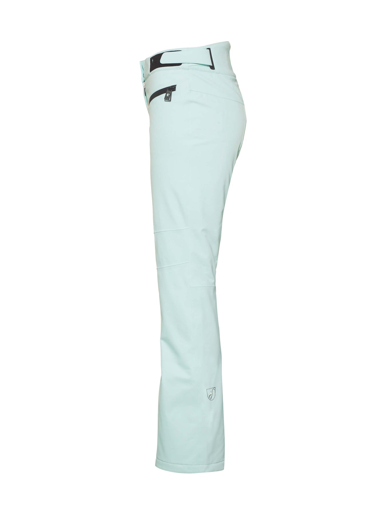 The technical and completely waterproof AMIS women’s ski pants impress with a perfect fit and maximum freedom of movement. The Japanese Premium 4-way Stretch stretches effortlessly in all directions, just like the PU membrane, which provides additional protection against moisture. The back waistband is cut higher to optimally warm the kidney area, while the YKK® AquaGuard® zippers reliably seal the two pockets against water. Fine details of the ski pants include the molded Toni Sailer logo on the edge protection.