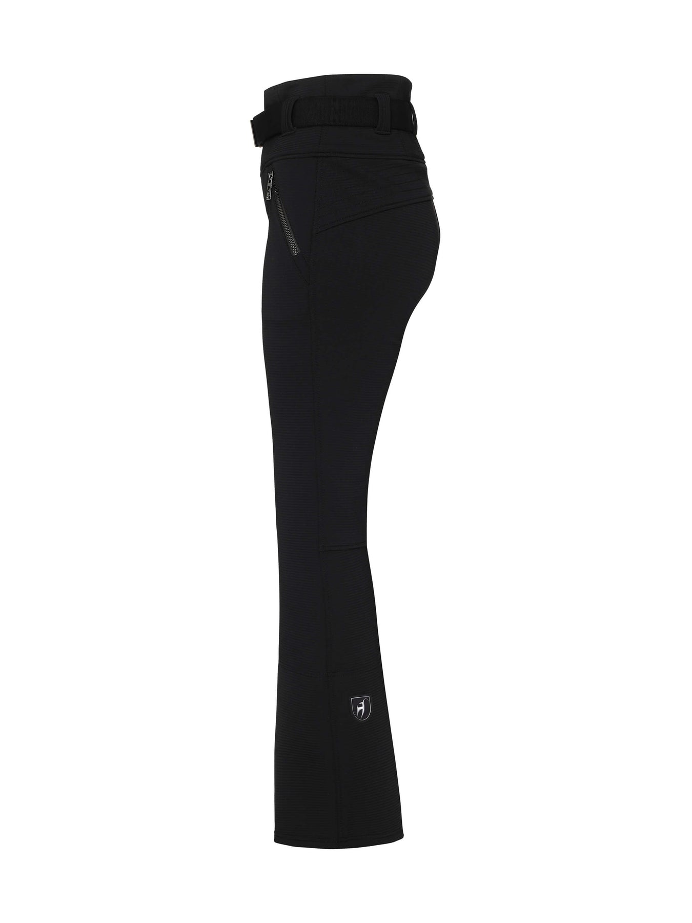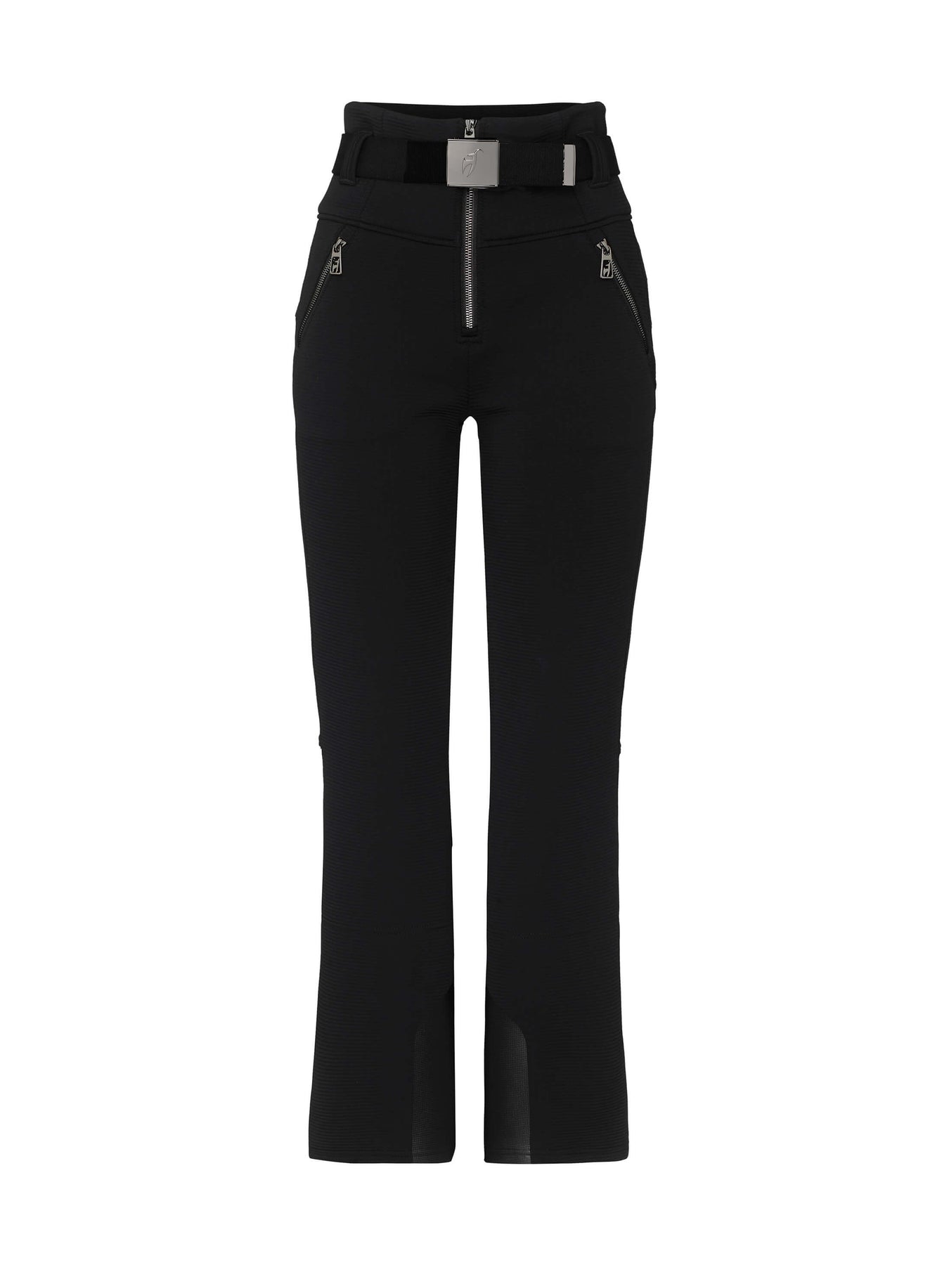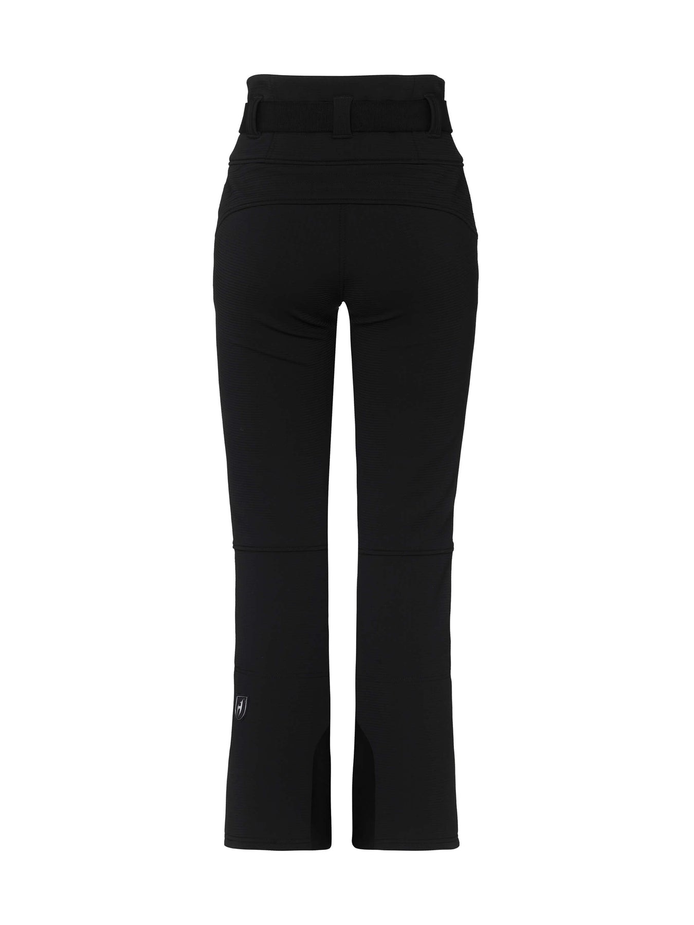 The OLIVIA STRUCTURE women’s ski pants delight with an exclusive, fashionably structured surface. They are designed with a high waistband to optimally protect the sensitive kidney area. For the style, Schoeller® Comfortshell bluesign® with a water-repellent finish is used, a highly comfortable material from the renowned Swiss company. The ski pants offer a perfect fit, an elastic belt with a gams embossing, as well as edge protection and snow guards. Modern, shiny YKK VISLON® Delta Shaped Elements zipper complete the Toni Sailer model. Parts of the ski pants are bluesign® approved, which means that the manufacturing process adheres to stringent environmental standards.