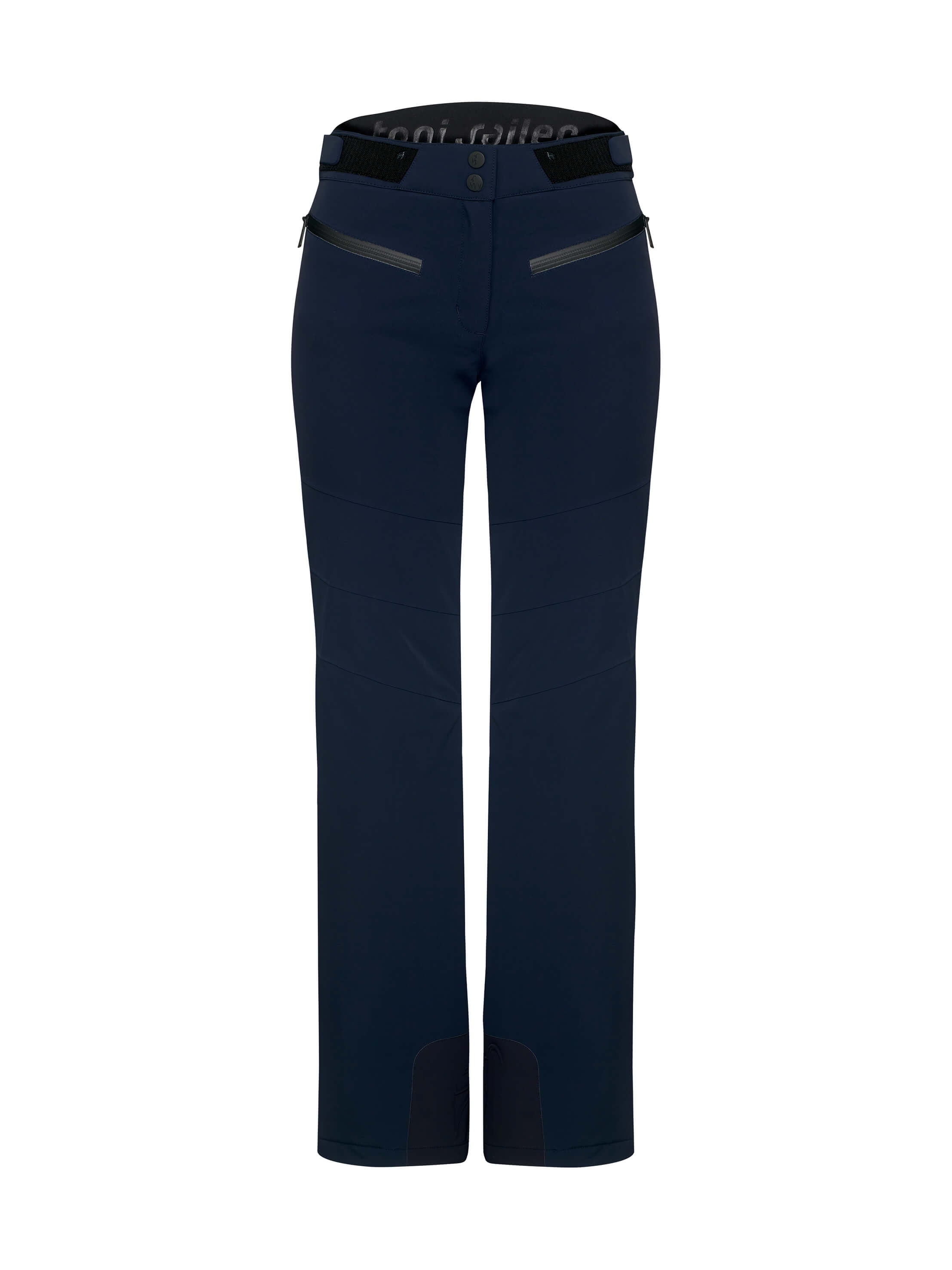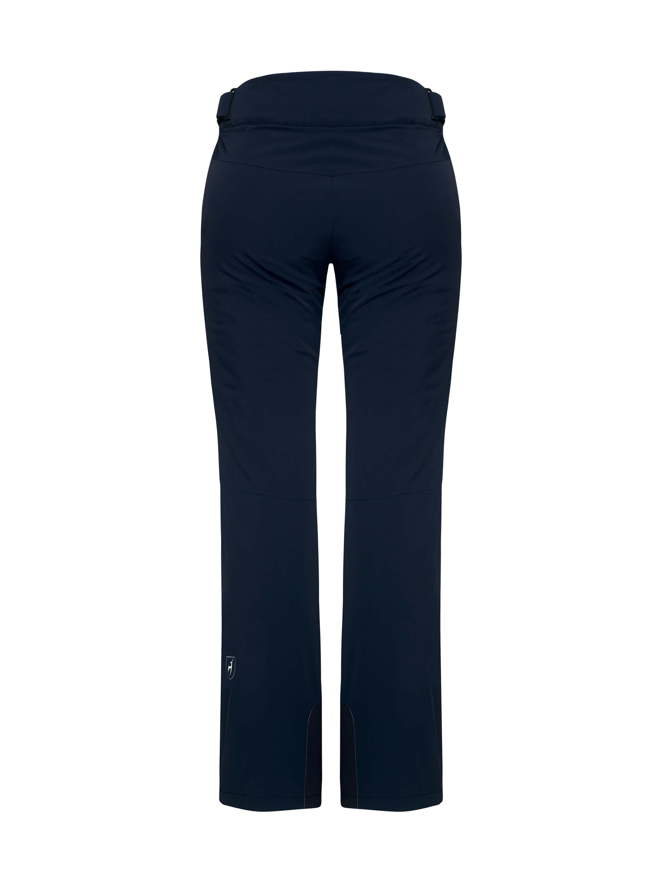 The technical and completely waterproof AMIS women’s ski pants impress with a perfect fit and maximum freedom of movement. The Japanese Premium 4-way Stretch stretches effortlessly in all directions, just like the PU membrane, which provides additional protection against moisture. The back waistband is cut higher to optimally warm the kidney area, while the YKK® AquaGuard® zippers reliably seal the two pockets against water. Fine details of the ski pants include the molded Toni Sailer logo on the edge protection.