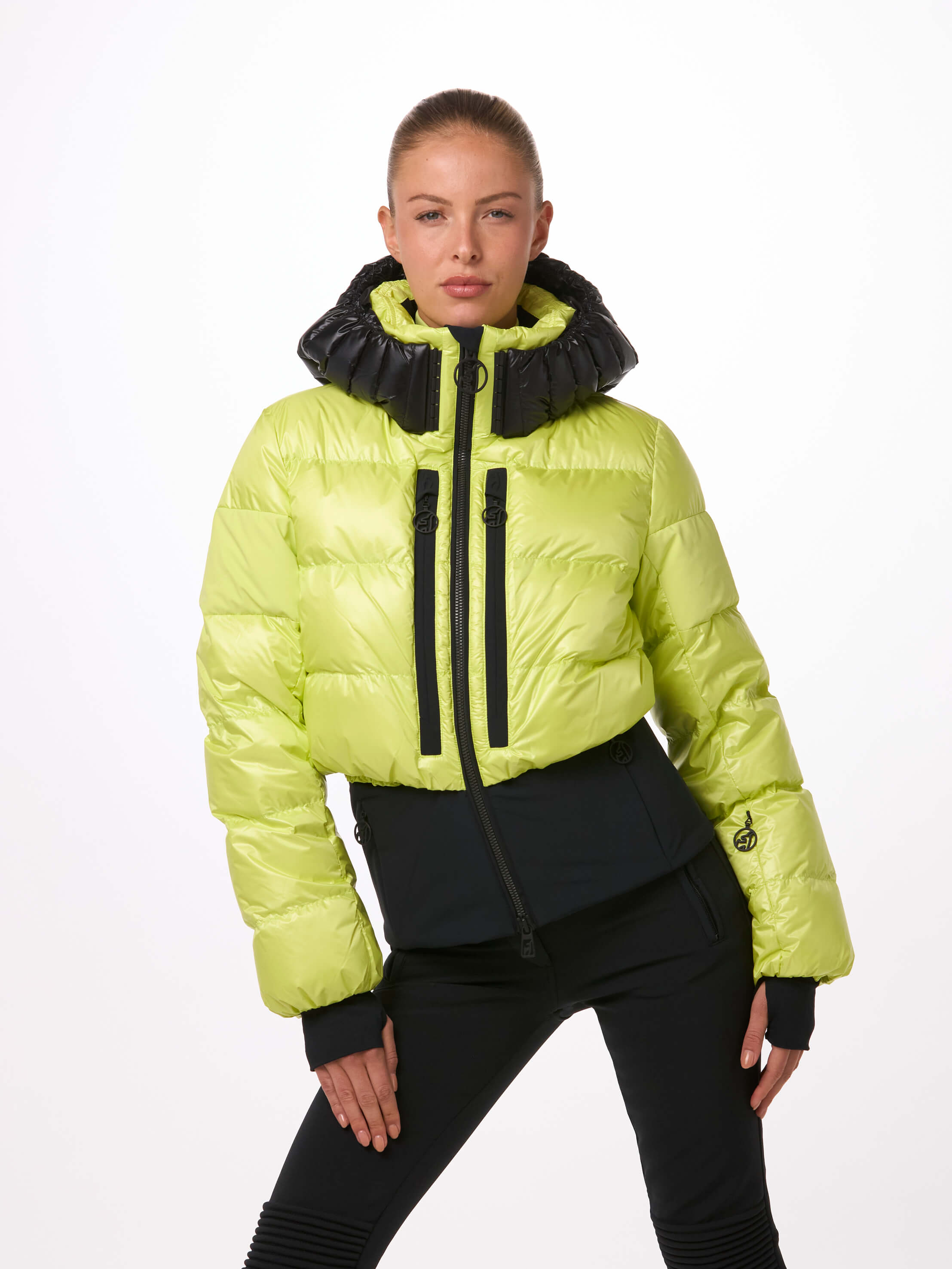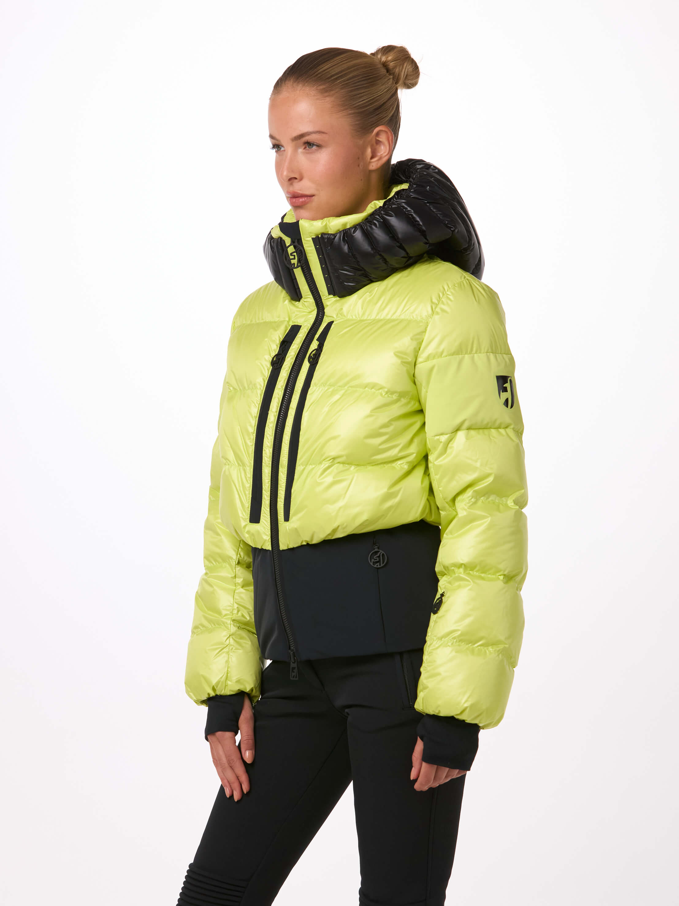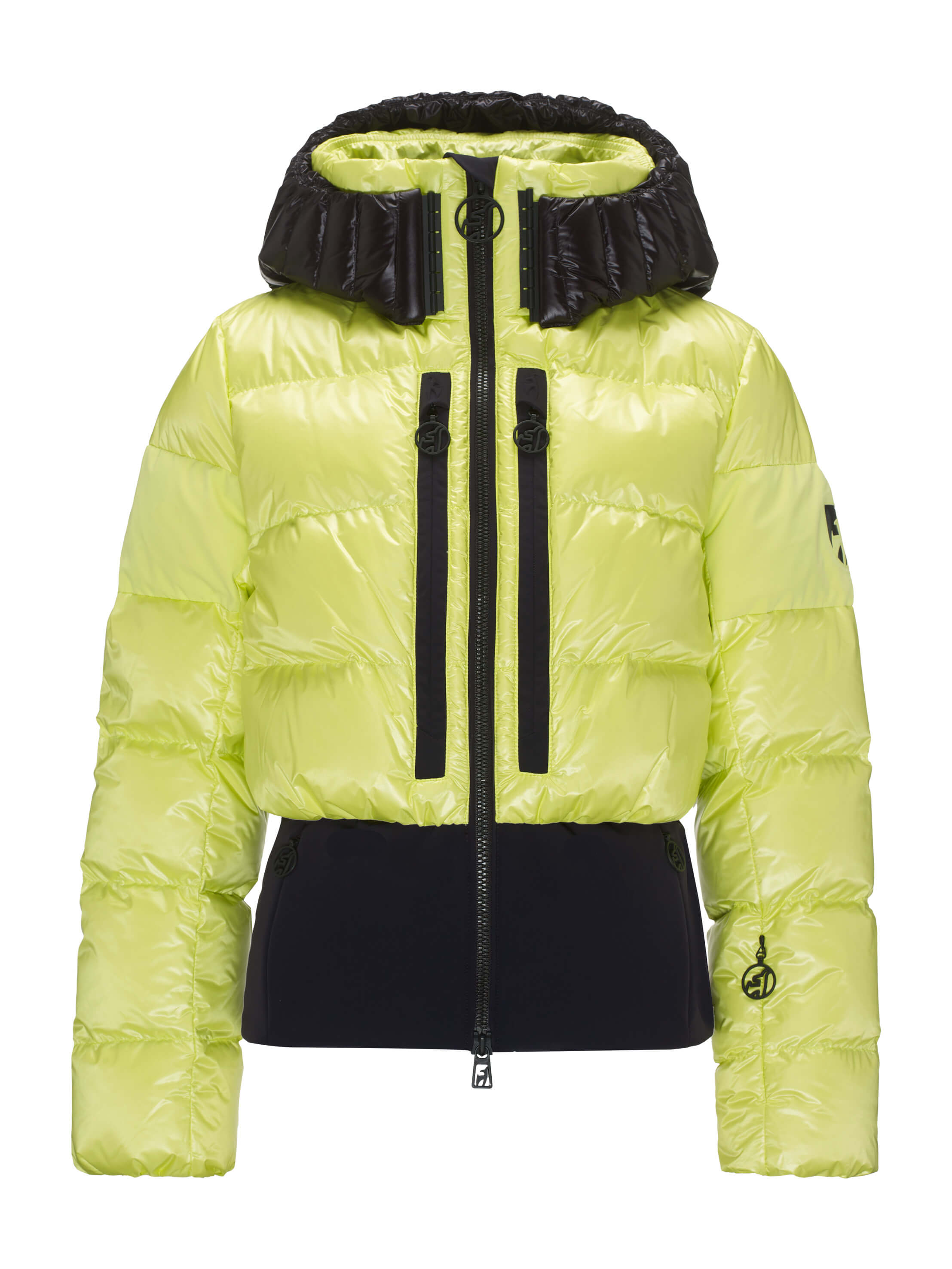 Light, warm and fashion. With 100% certified down insulation the BERNADETTE jacket creates a very fashy puffy look on the slopes and in the resorts. Loose fit optic meets slim fit! The YKK® 2-way METALUXE® front zipper, the glossy bonded logos and the special shiny chamber look fabric for the hood make the BERNADETTE so progressive.