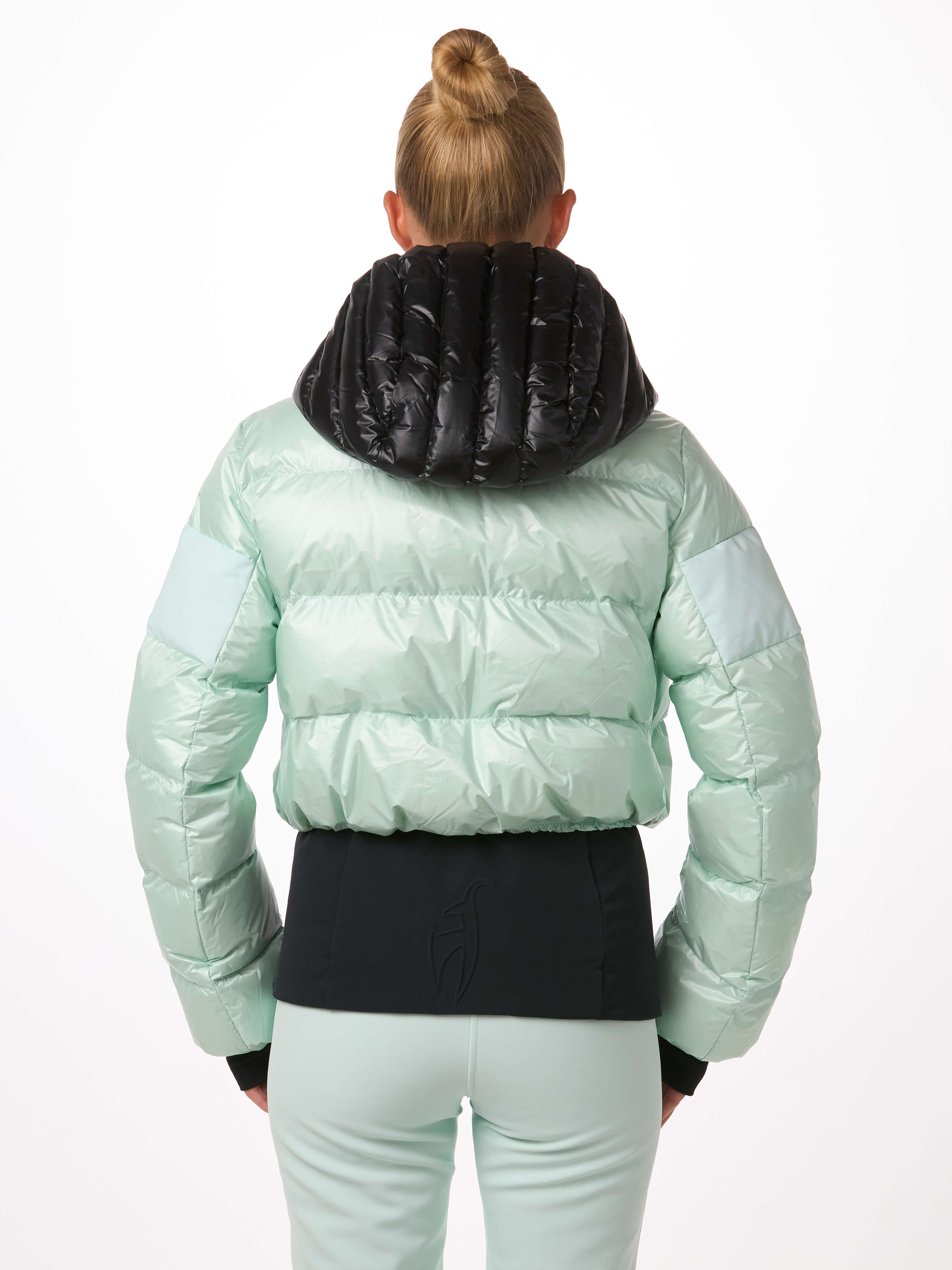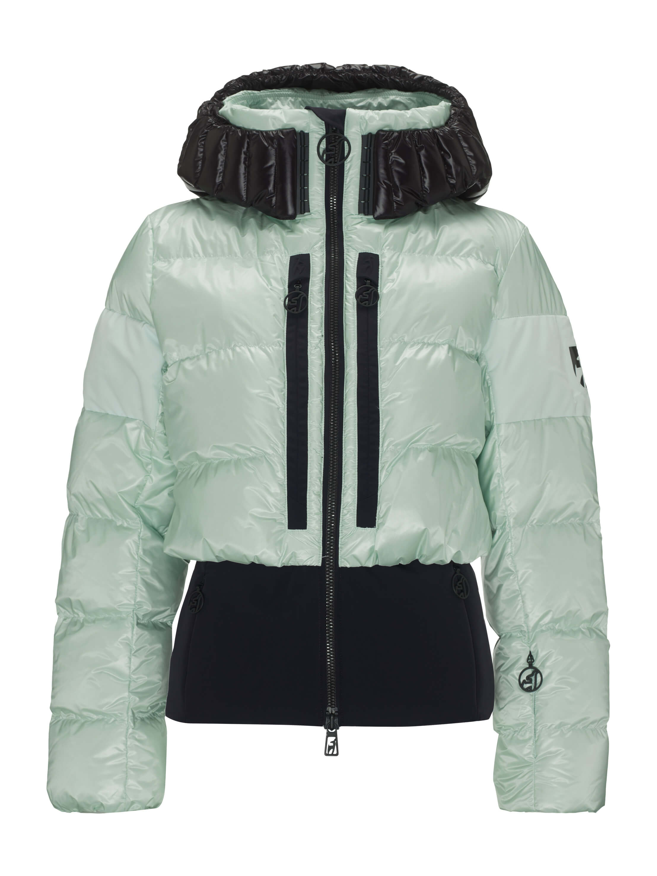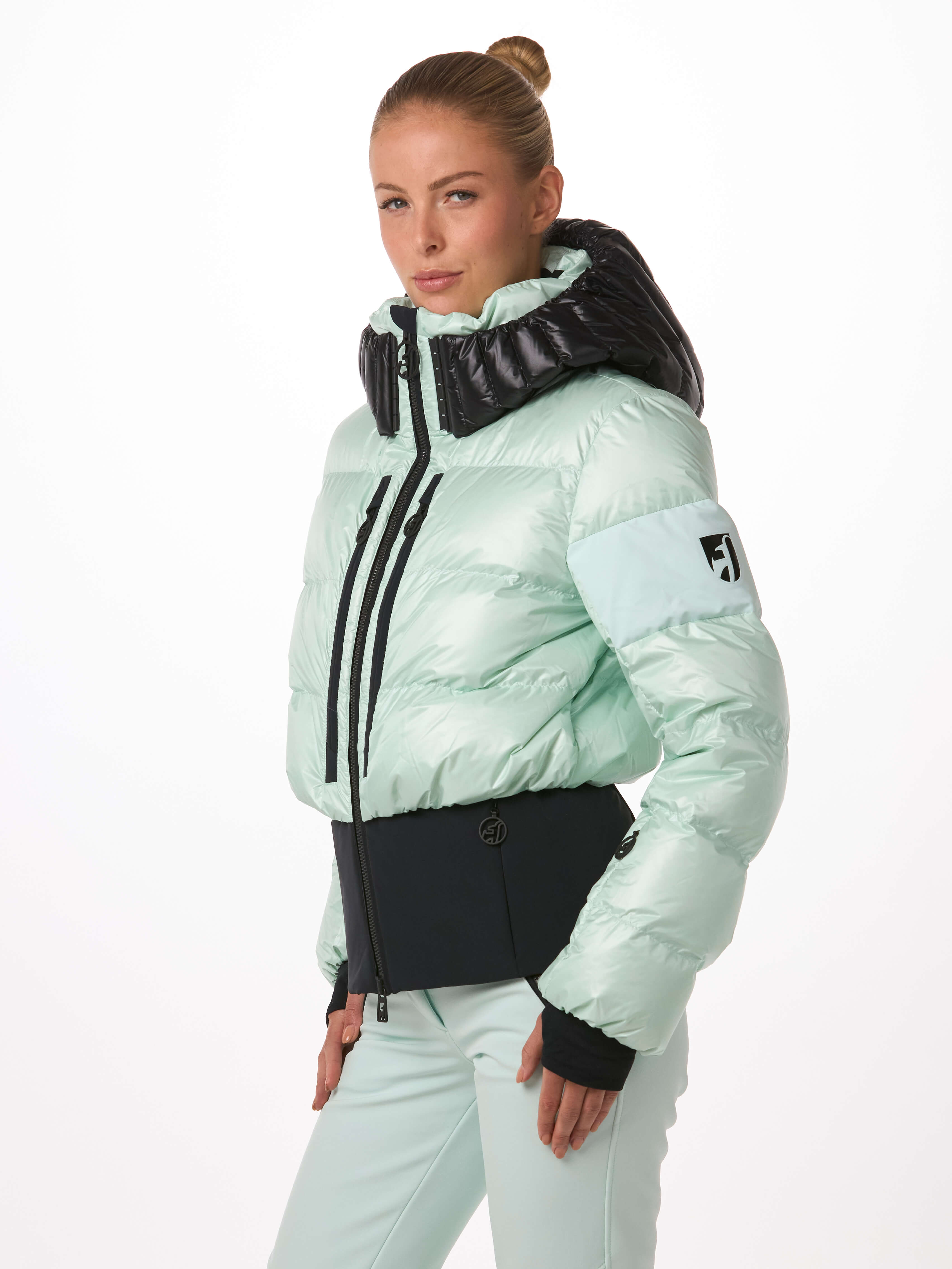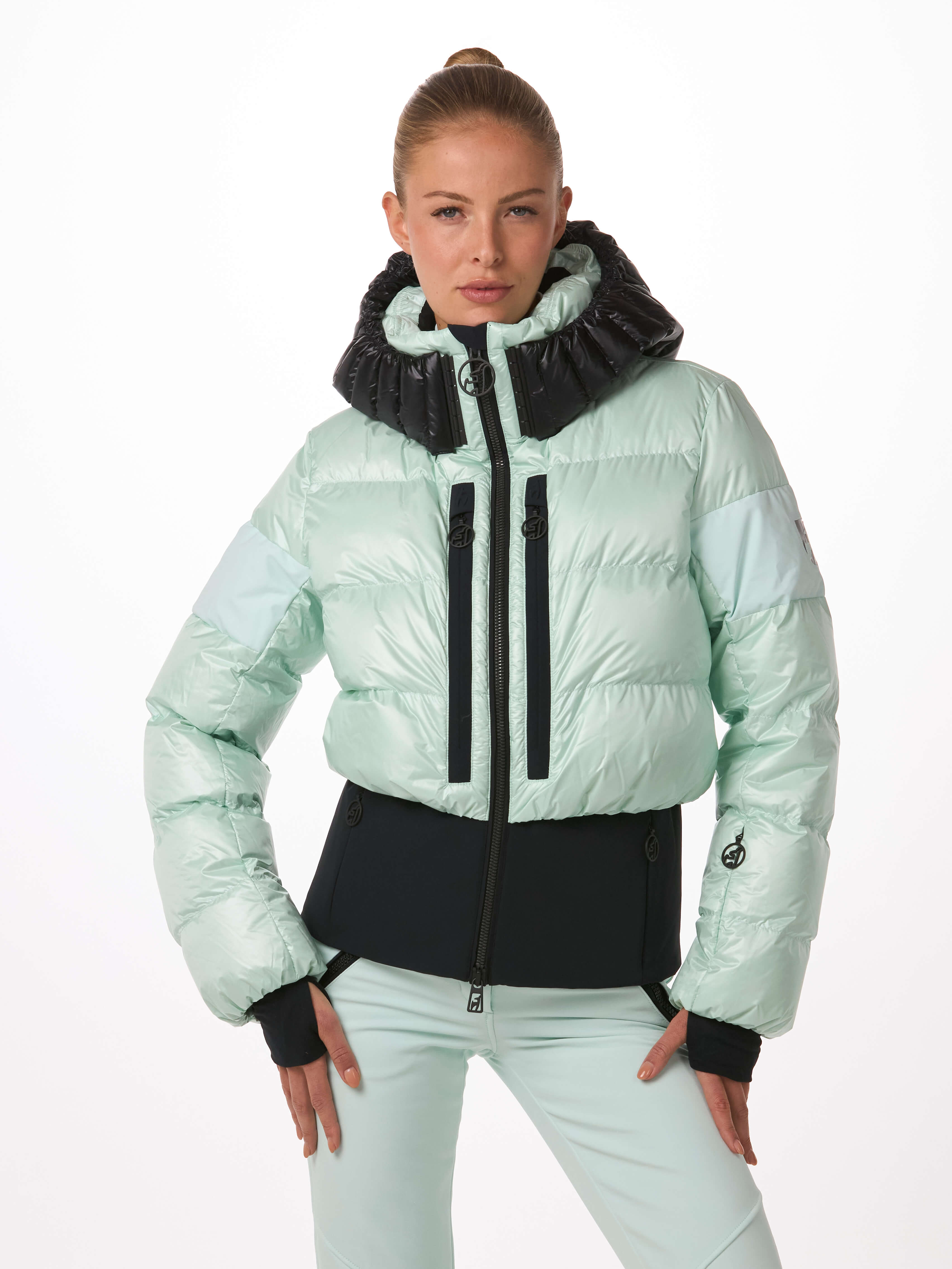 Light, warm and fashion. With 100% certified down insulation the BERNADETTE jacket creates a very fashy puffy look on the slopes and in the resorts. Loose fit optic meets slim fit! The YKK® 2-way METALUXE® front zipper, the glossy bonded logos and the special shiny chamber look fabric for the hood make the BERNADETTE so progressive.