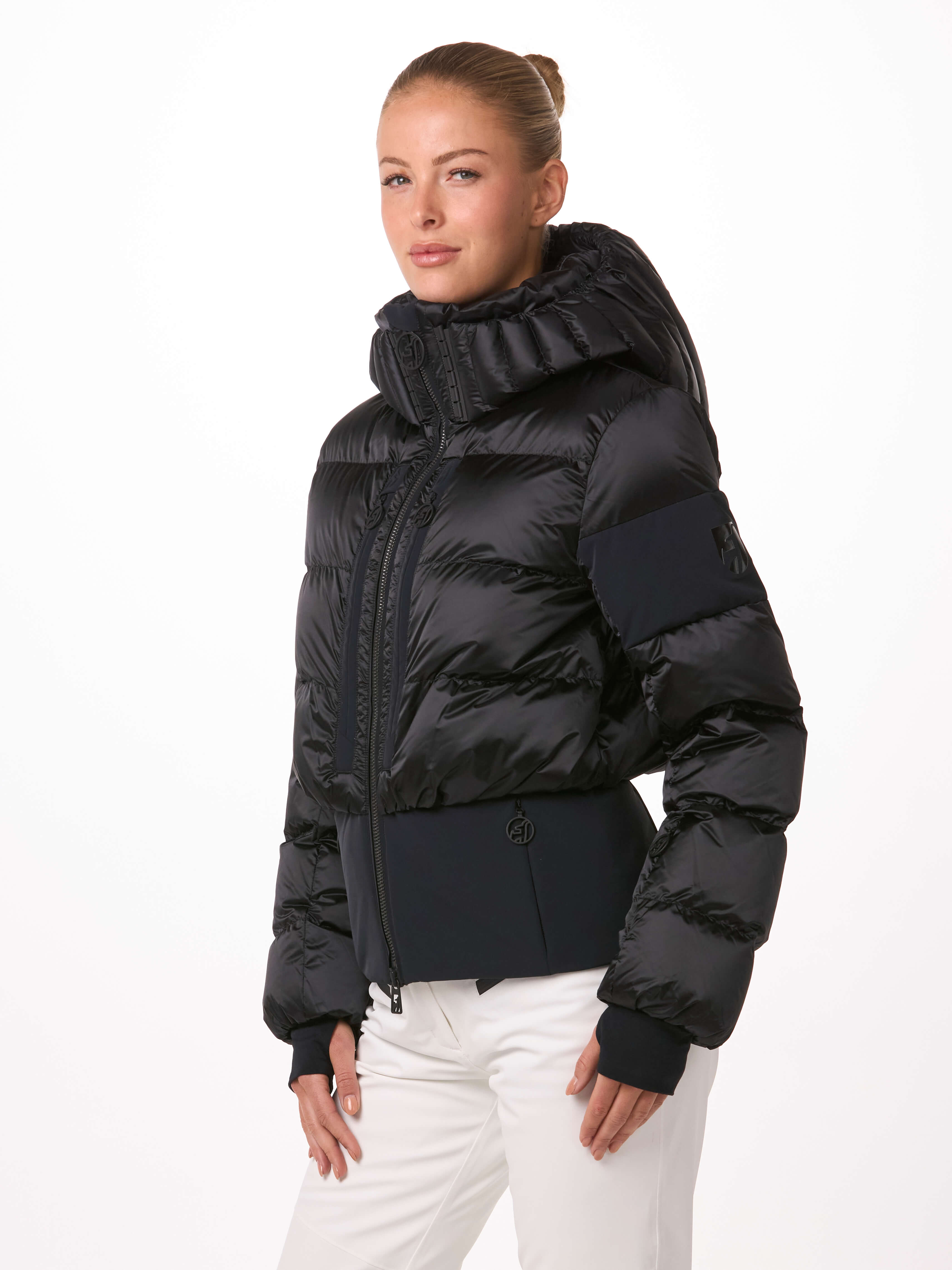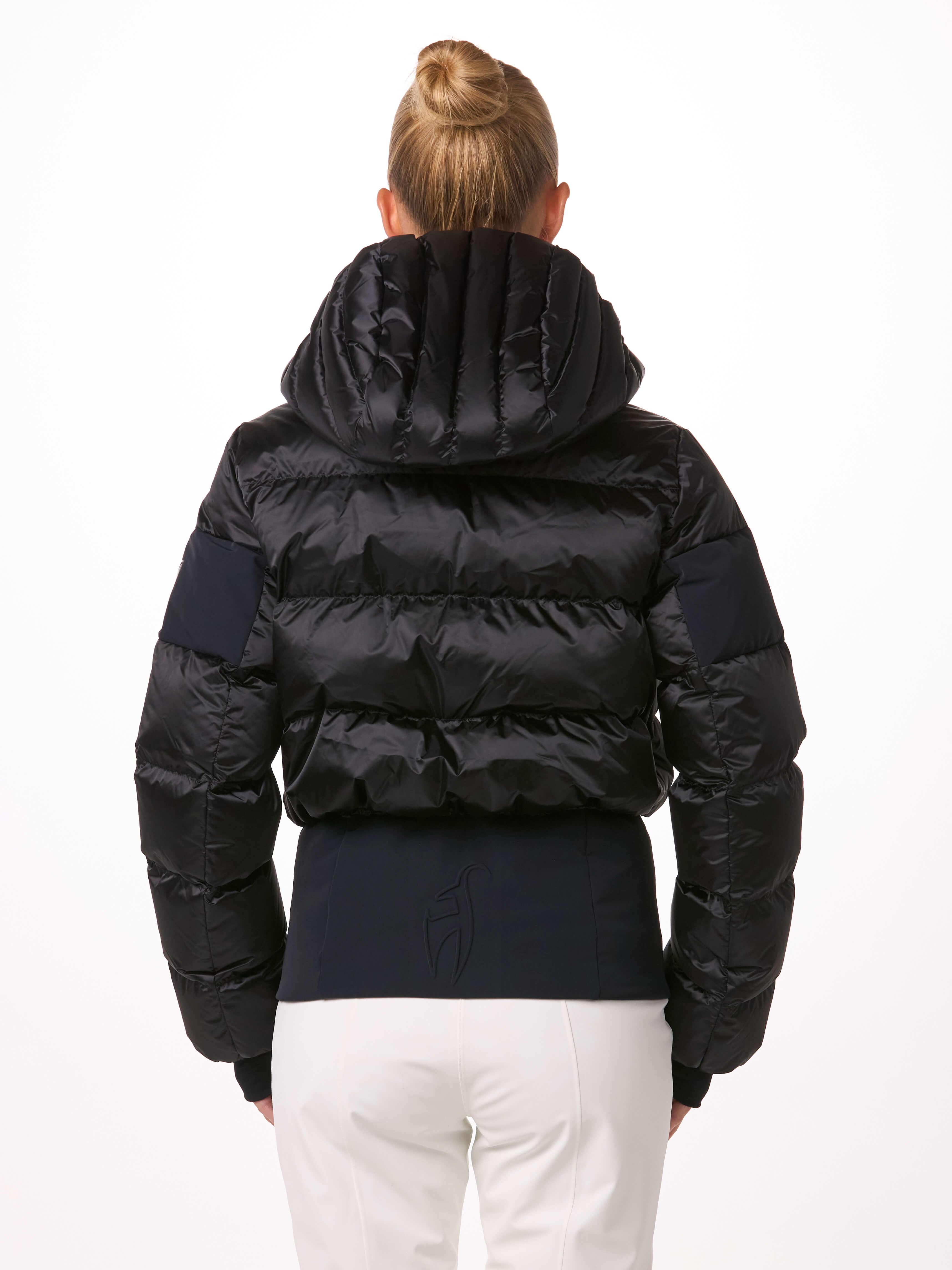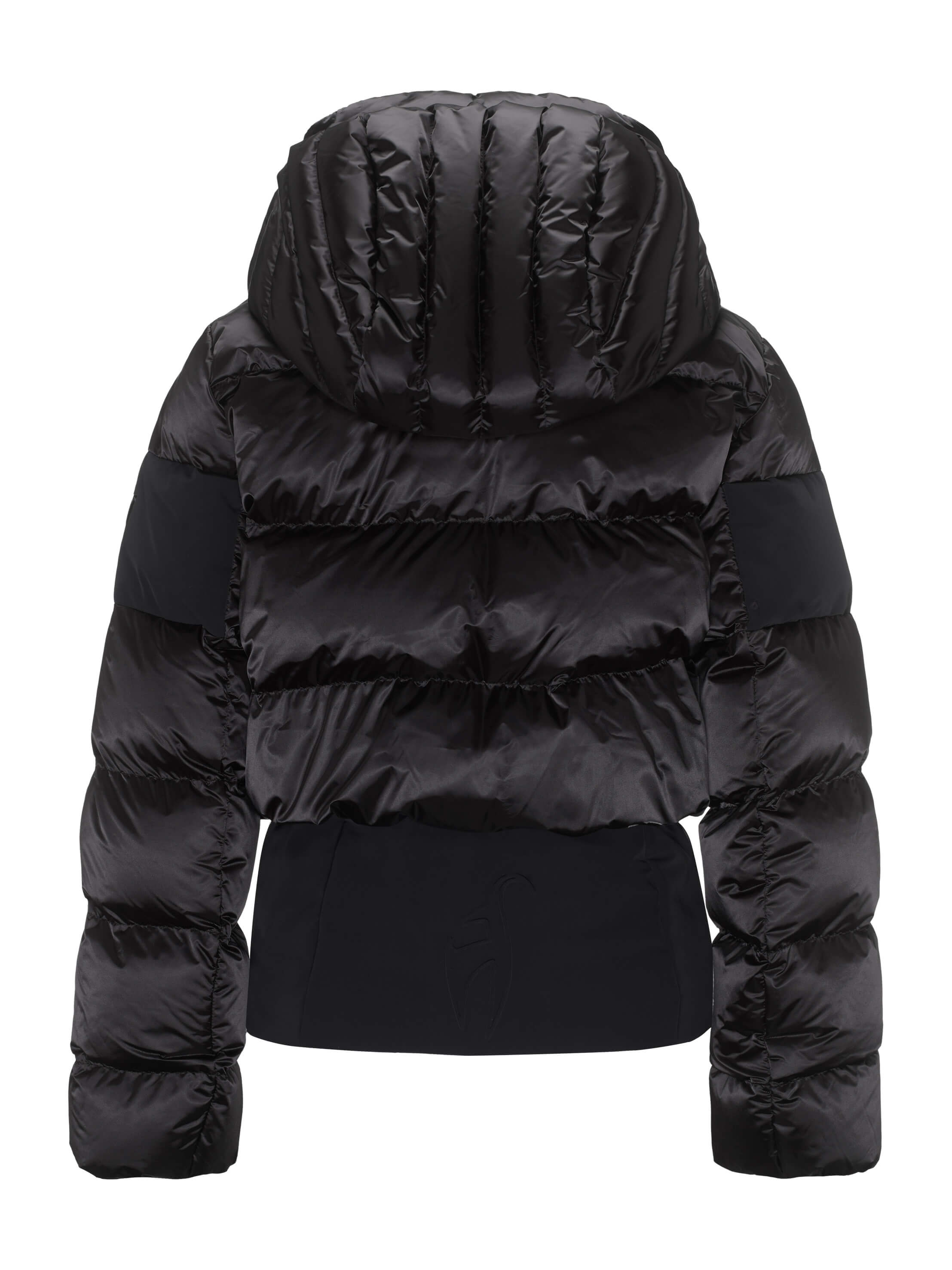 Glamour meets function. The Shiny Pearl fabric mixed with our Premium 4-way Stretch gives you the modern look without loosing any performance. 750 cuin fill power keeps you warm, even on the coldest winter days. The BERNADETTE SPLENDID shows progressive detailing with YKK® 2-way METALUXE® zippers, new engineered logos and an exclusive designed hood for the cold days.