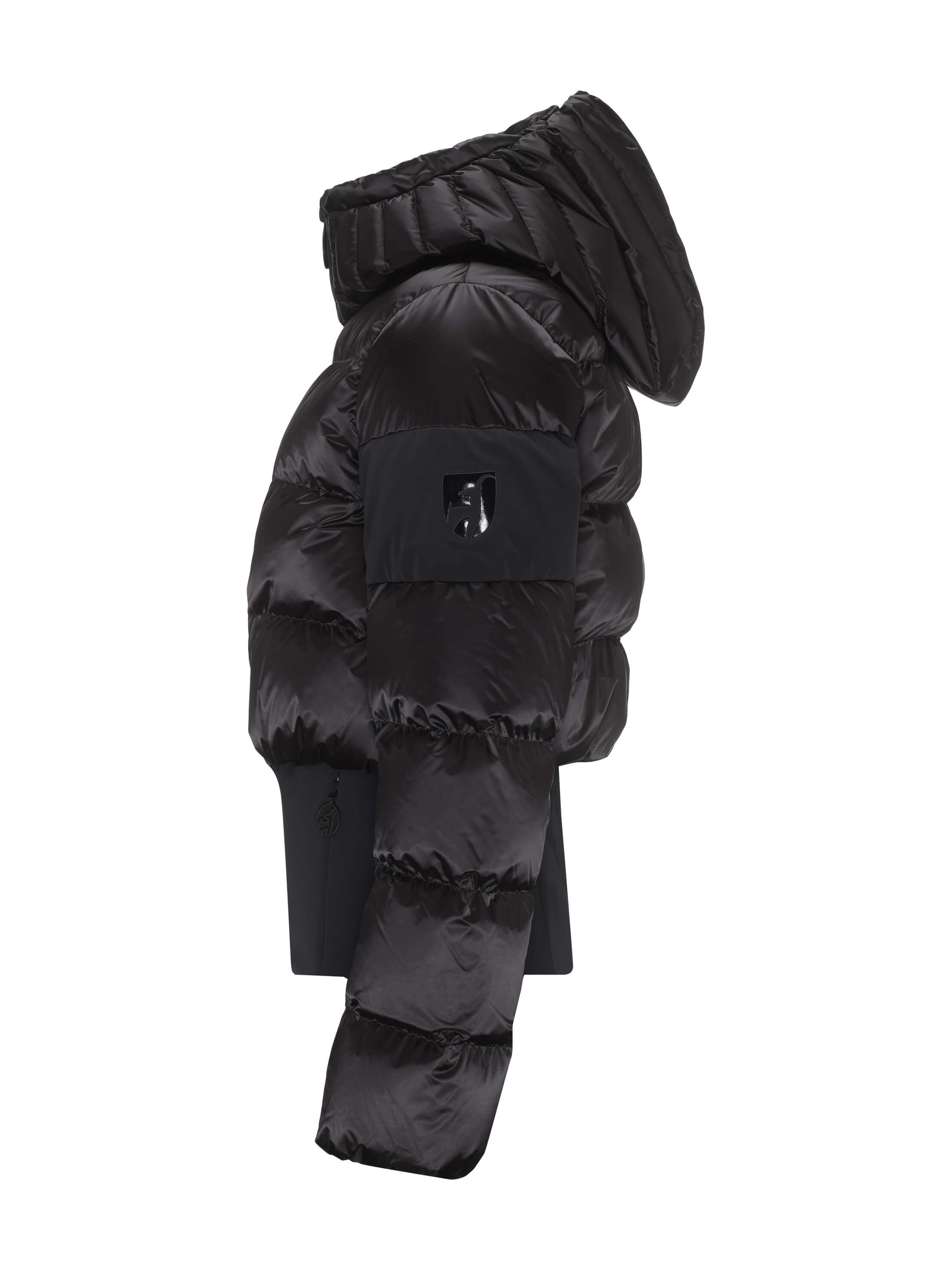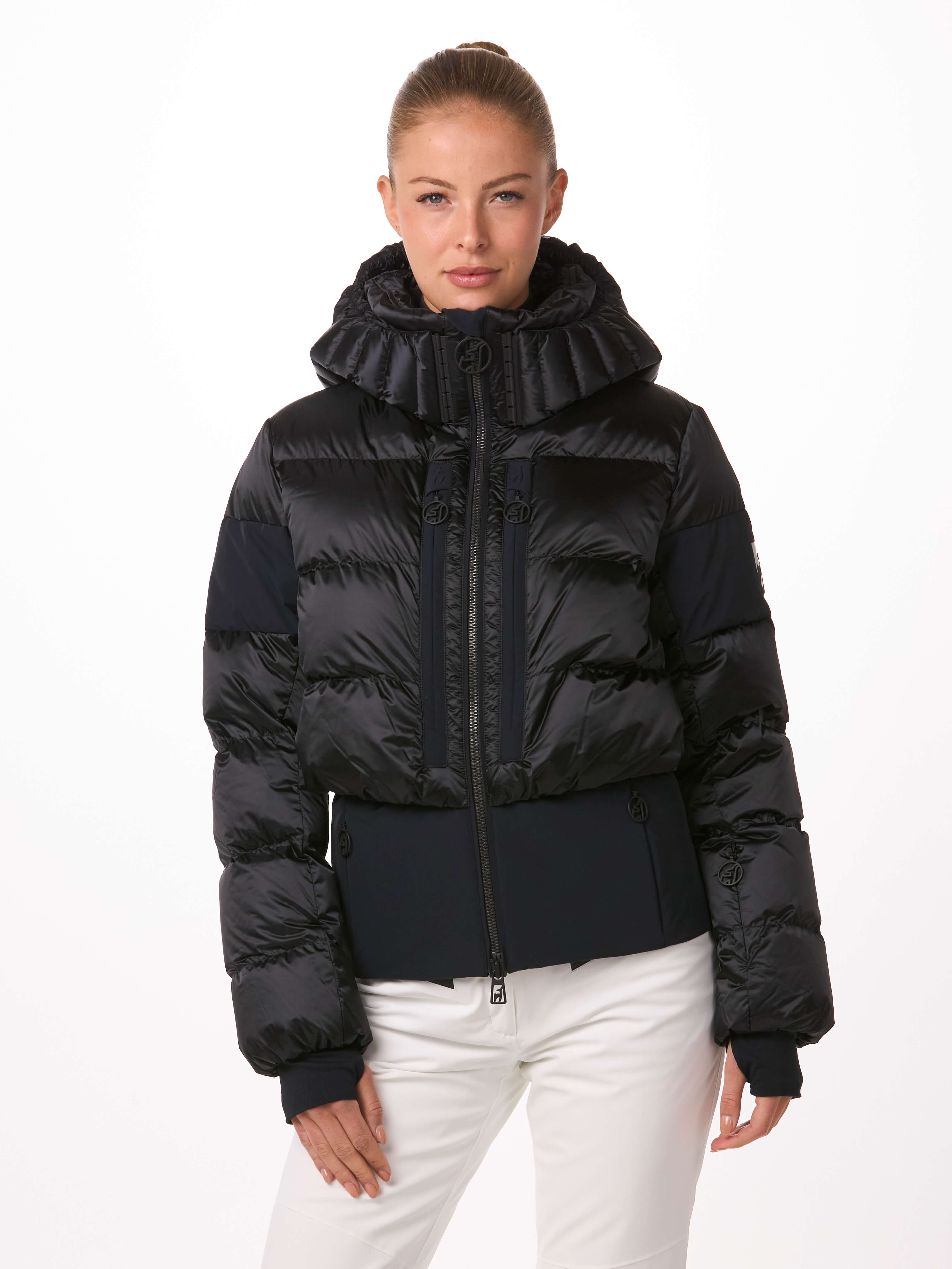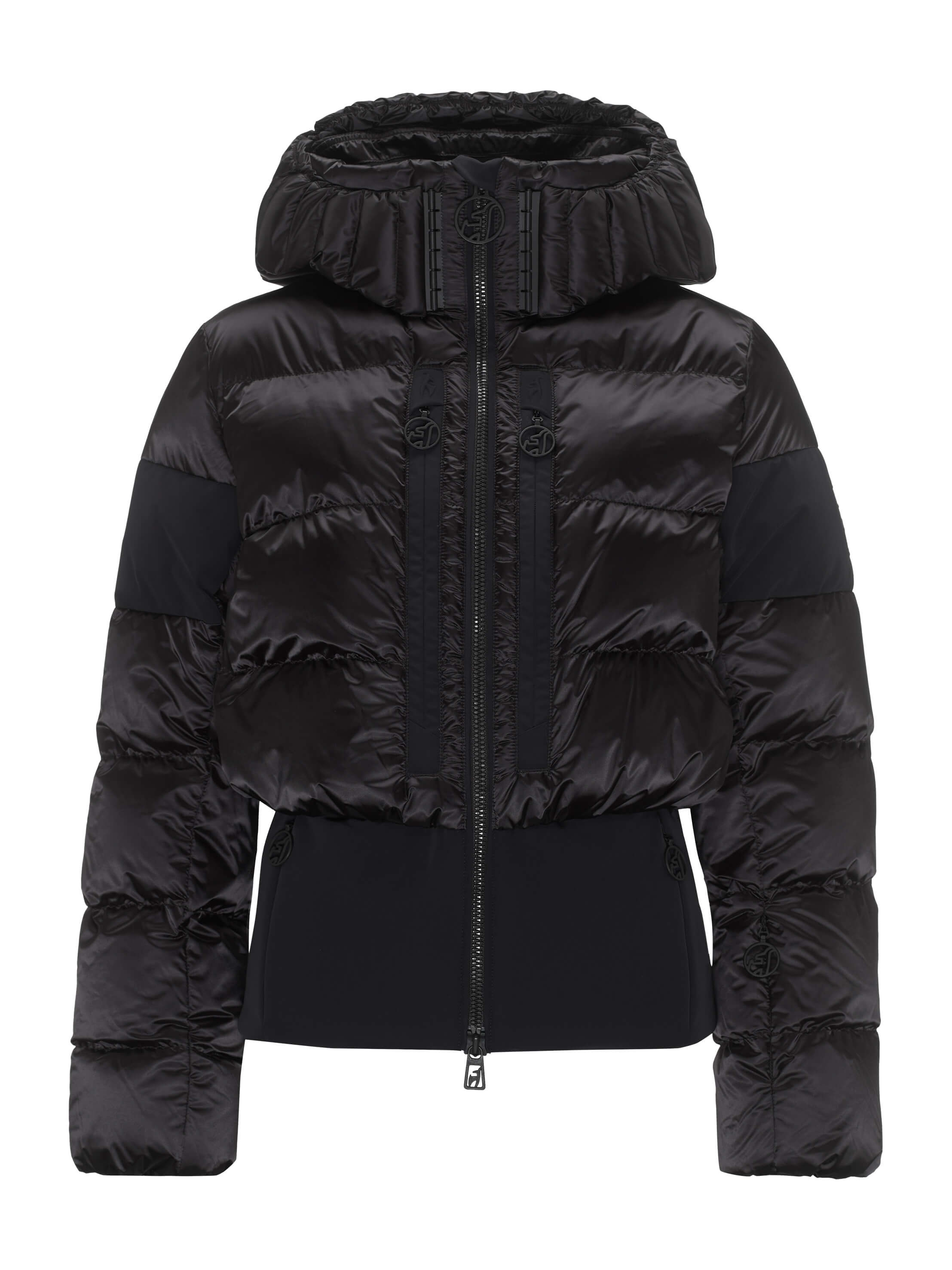 Glamour meets function. The Shiny Pearl fabric mixed with our Premium 4-way Stretch gives you the modern look without loosing any performance. 750 cuin fill power keeps you warm, even on the coldest winter days. The BERNADETTE SPLENDID shows progressive detailing with YKK® 2-way METALUXE® zippers, new engineered logos and an exclusive designed hood for the cold days.