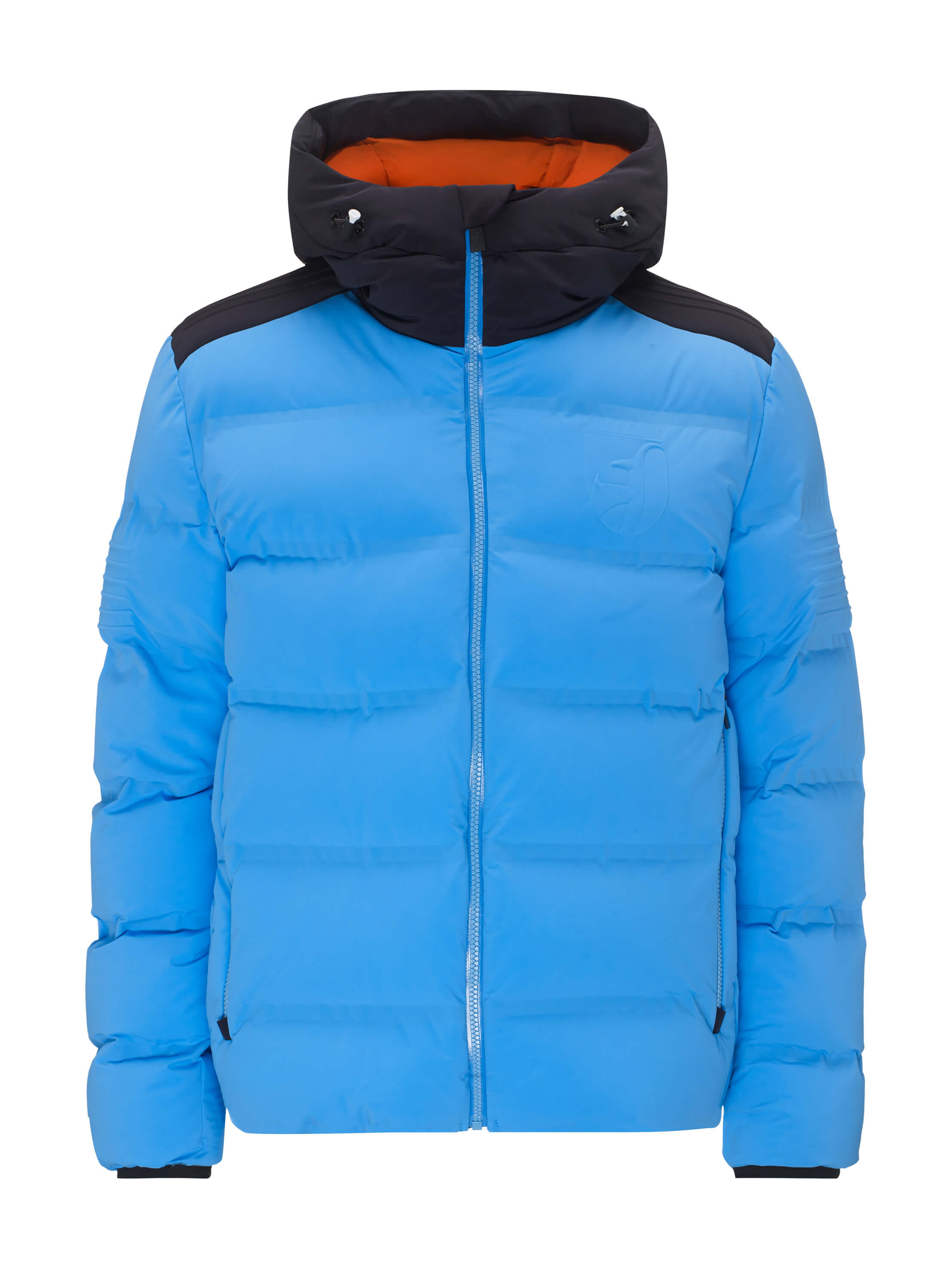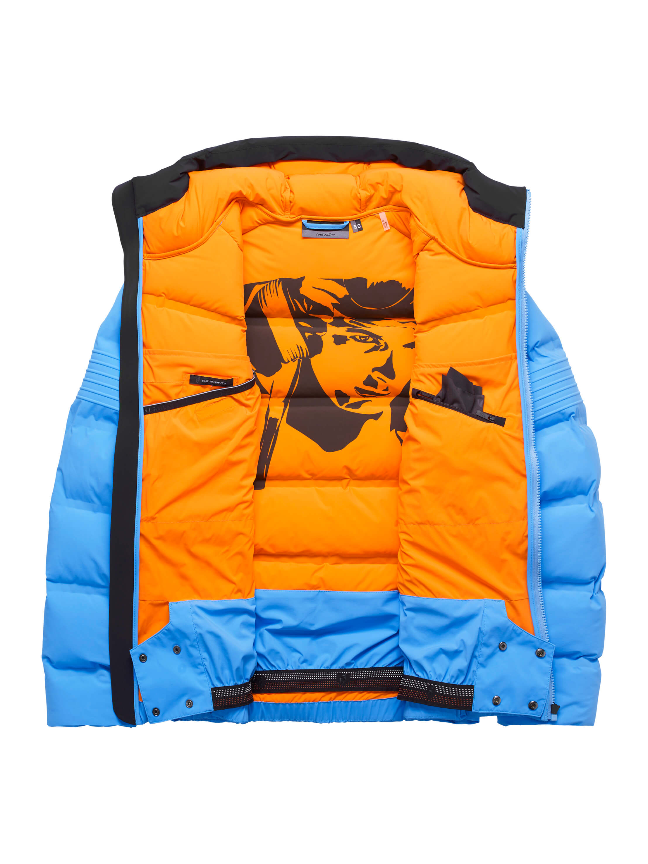 The FINN men’s ski jacket creates a new urban puffy look with PrimaLoft® Down Blend! This makes you feel so cozy during the cold winter days on the slopes or in the city! This comfort fit jacket highlights the legendary Toni Sailer in the year of our 20th anniversary inside. Even it's a luxury puffy look, the FINN is one of our lightest jackets in the range AW25/26.