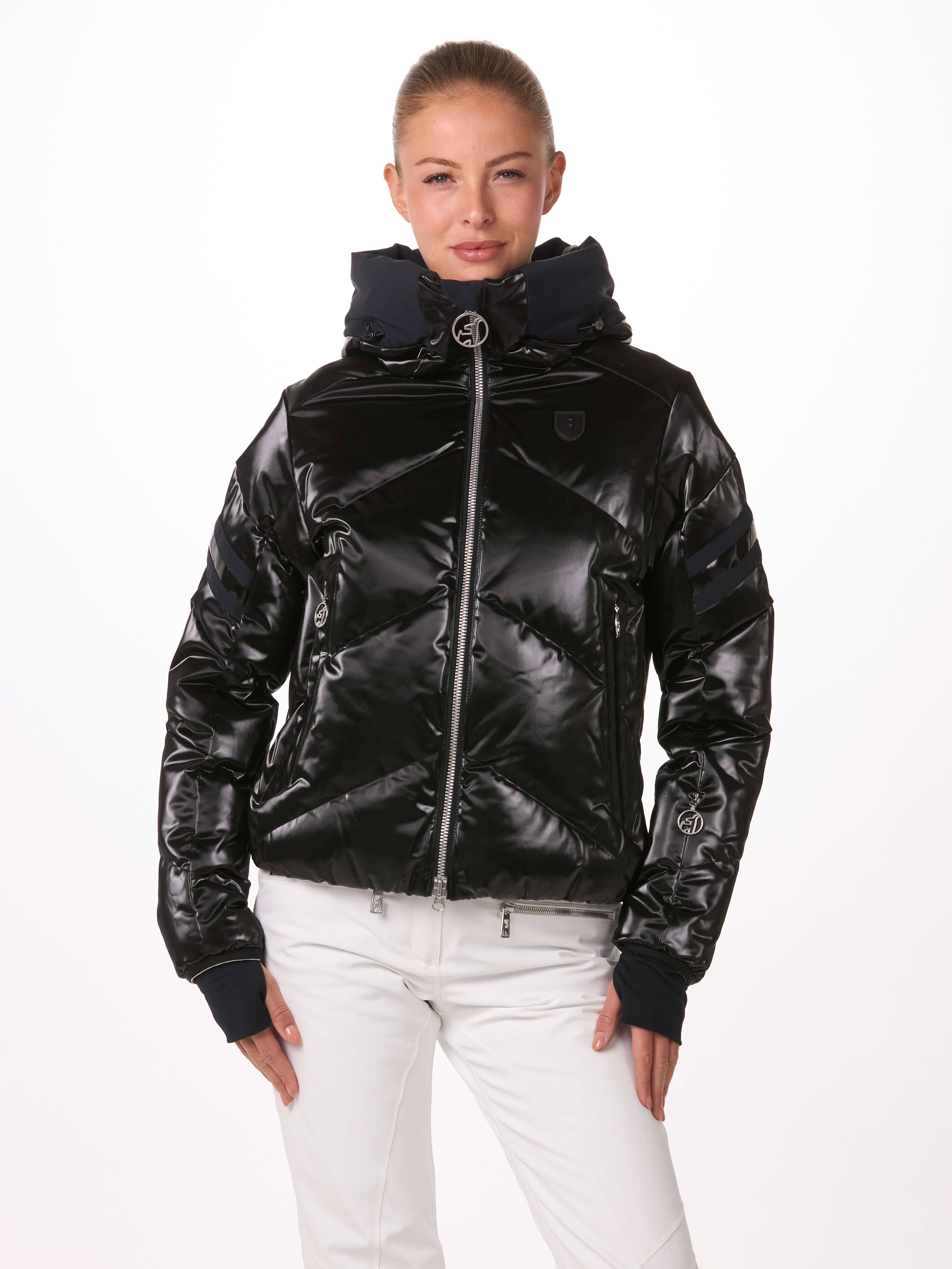 Luxurious glimmer stretch! The HELENA GLIMMER is our next special edition made out of a very limited fabric. This underlines our Toni Sailer DNA – fashion meets function! Shiny black details and new designed 3D embossed logos and on the hood complete this modern style.