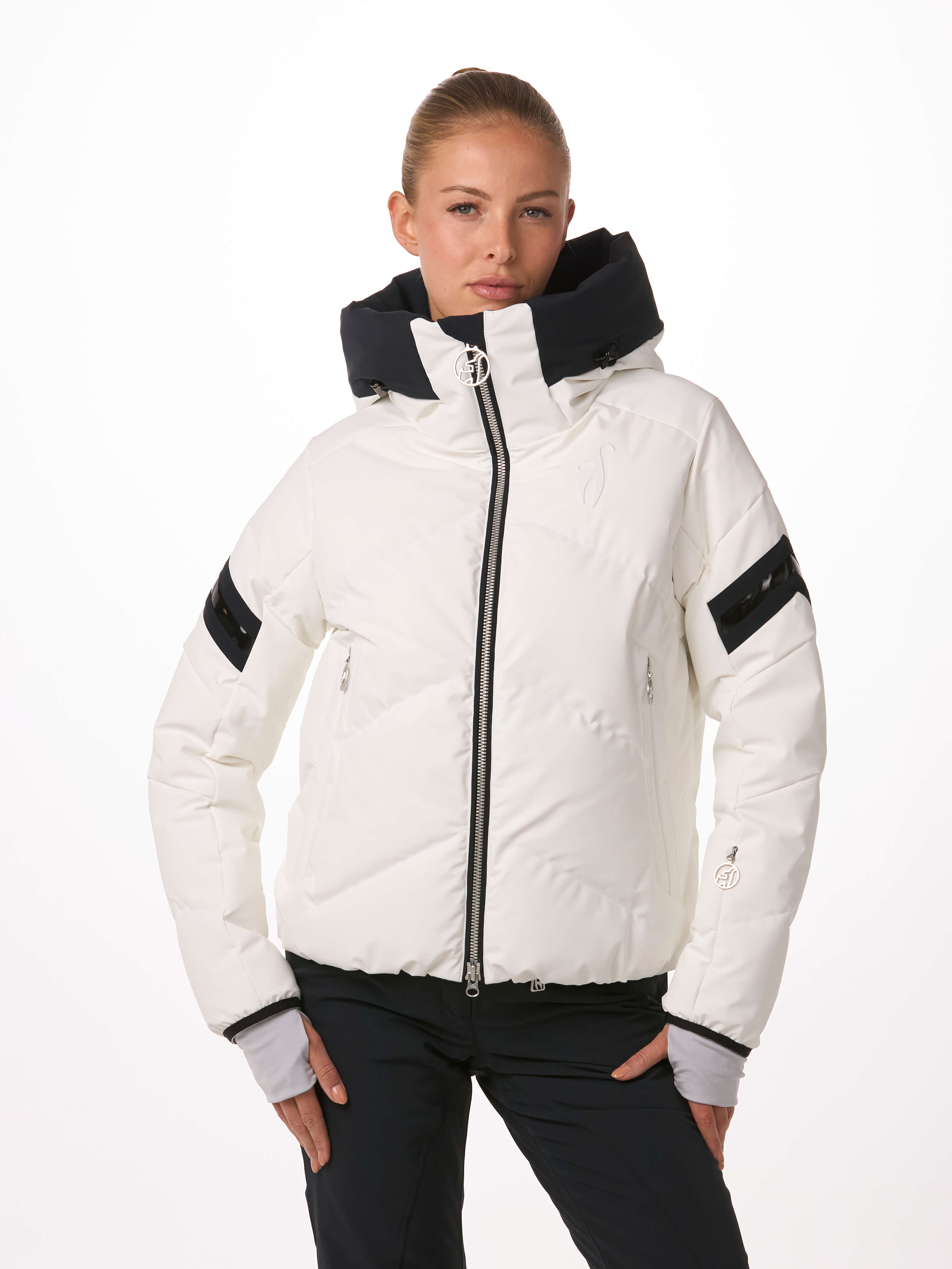 The HELENA STRETCH jackets provides you a new Toni Sailer comfort fit with a modern silhouette! 100% certified down with 750 cuin fill power gives you the warmth you need on freezy winter days – on the slopes and in the city. Have a look on the new shiny black detailing’s and the 3D embossed logos at the chest and on the hood!