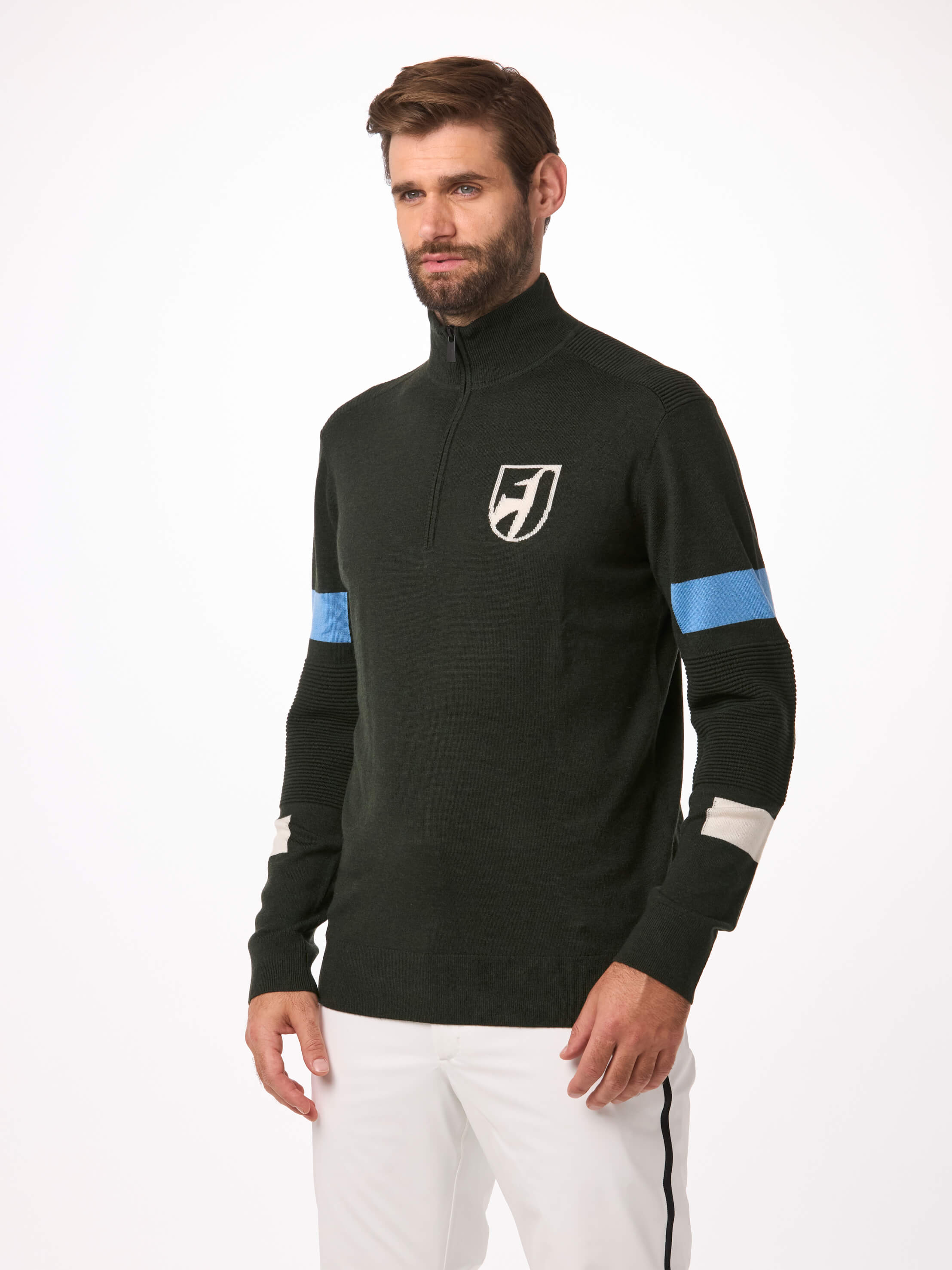 The HUBERT men’s merino sweater is perfect for both skiing and leisure. The extra fine merino wool is breathable, moisture-wicking, and temperature-regulating. The stand-up collar protects the neck from wind, while the YKK® zipper allows for individual ventilation. Various colour-contrasted details give the knit sweater a sporty character. The smocked sections on the shoulders and upper arms complement the Toni Sailer style.