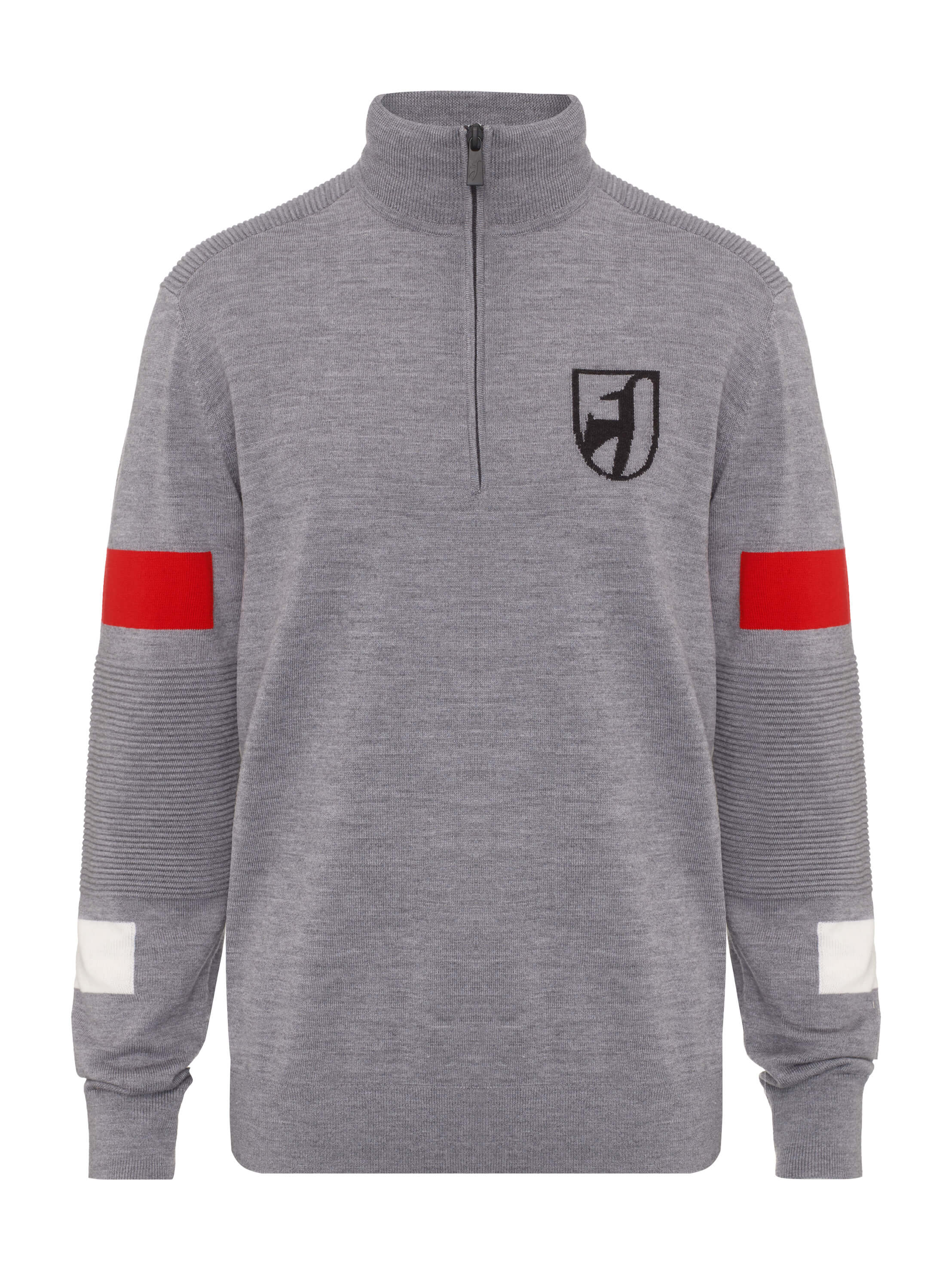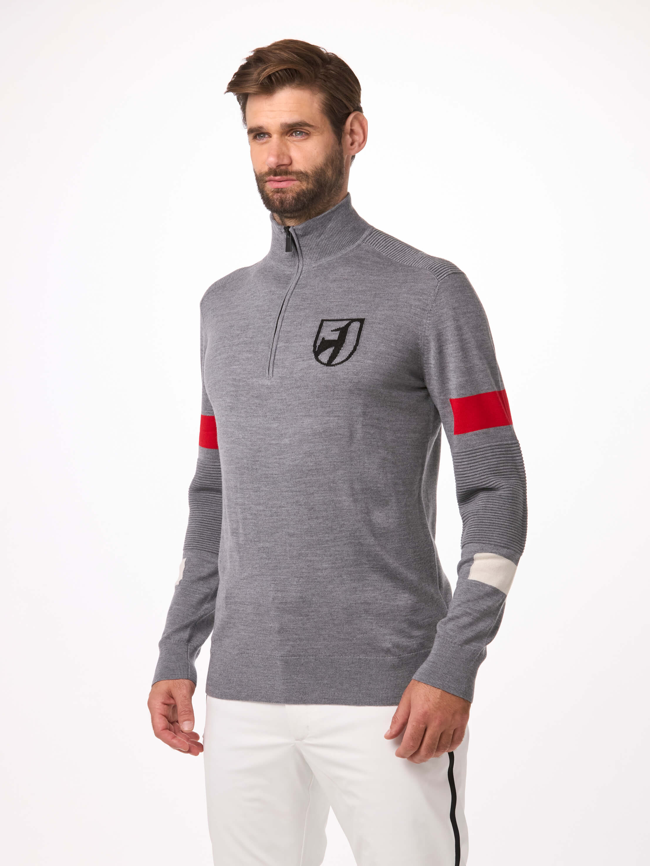 The HUBERT men’s merino sweater is perfect for both skiing and leisure. The extra fine merino wool is breathable, moisture-wicking, and temperature-regulating. The stand-up collar protects the neck from wind, while the YKK® zipper allows for individual ventilation. Various colour-contrasted details give the knit sweater a sporty character. The smocked sections on the shoulders and upper arms complement the Toni Sailer style.