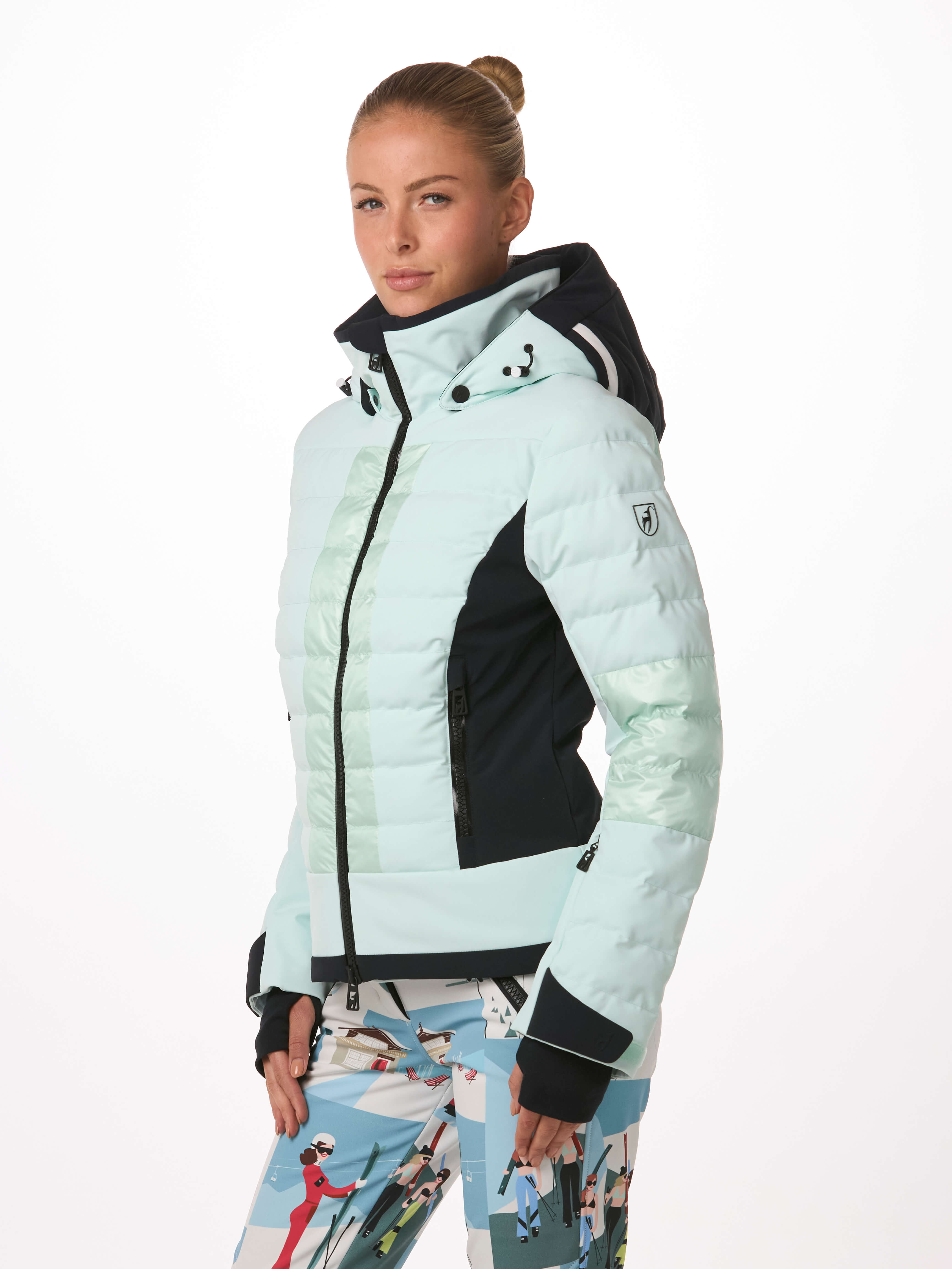 The perfect mix between Premium 4-way Stretch and our Nylon Shiny Ripstop, between tonal and shiny fabric details, between fibre filled chambers and plain details.  The LISBETH jacket or how we say it – fashion meets function! With its SORONA® fiberballs insulation, this jacket is made for long days in the mountains. Premium stretch supports each of your turns in deep powder or on the slopes.