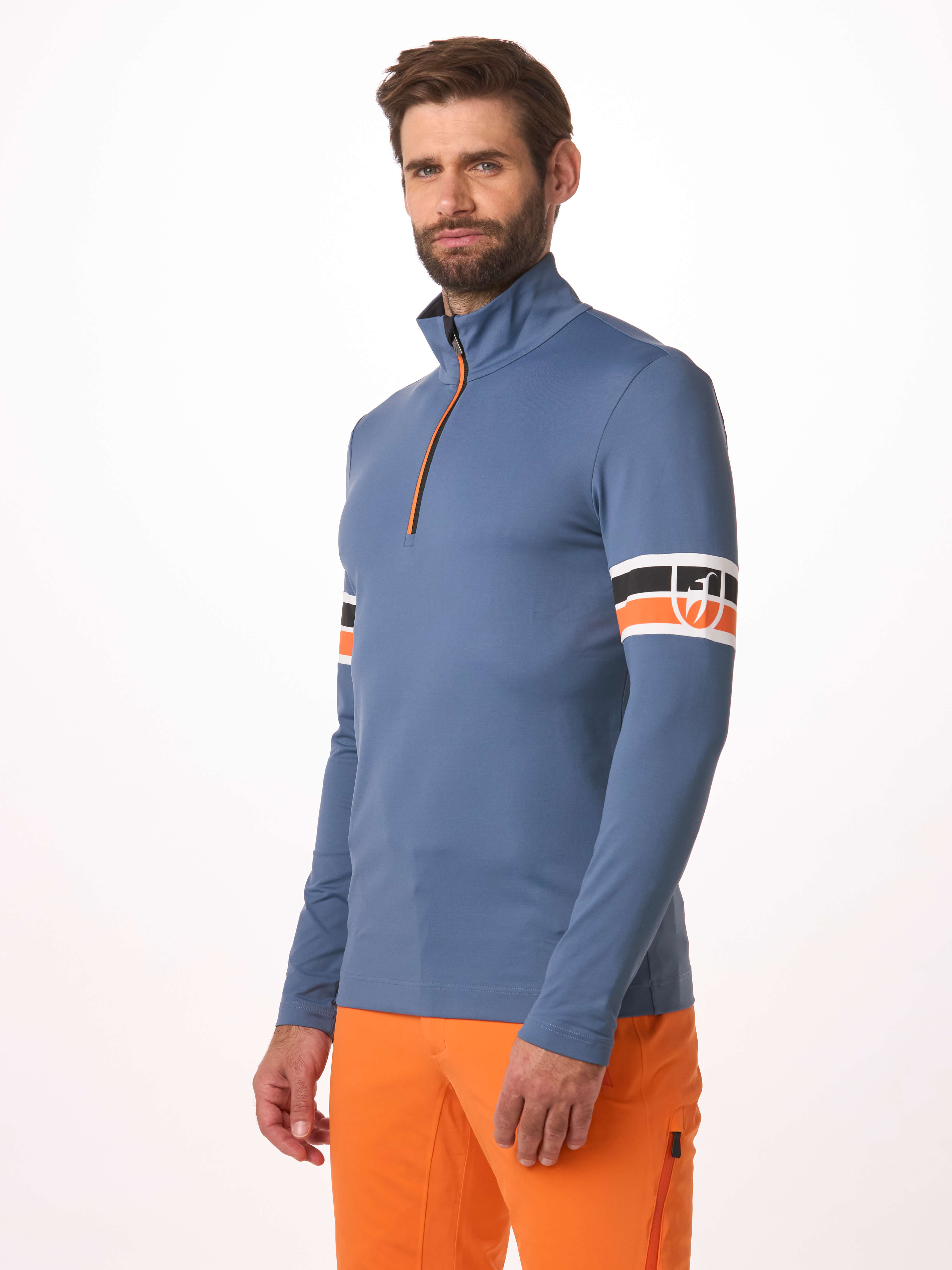 Designed for comfort and performance on the slopes, the MATEO men’s first layer is made from a lightweight, breathable, and quick-drying functional jersey from France. Signature accent stripes add to the sporty look, which is completed by the YKK® zipper.