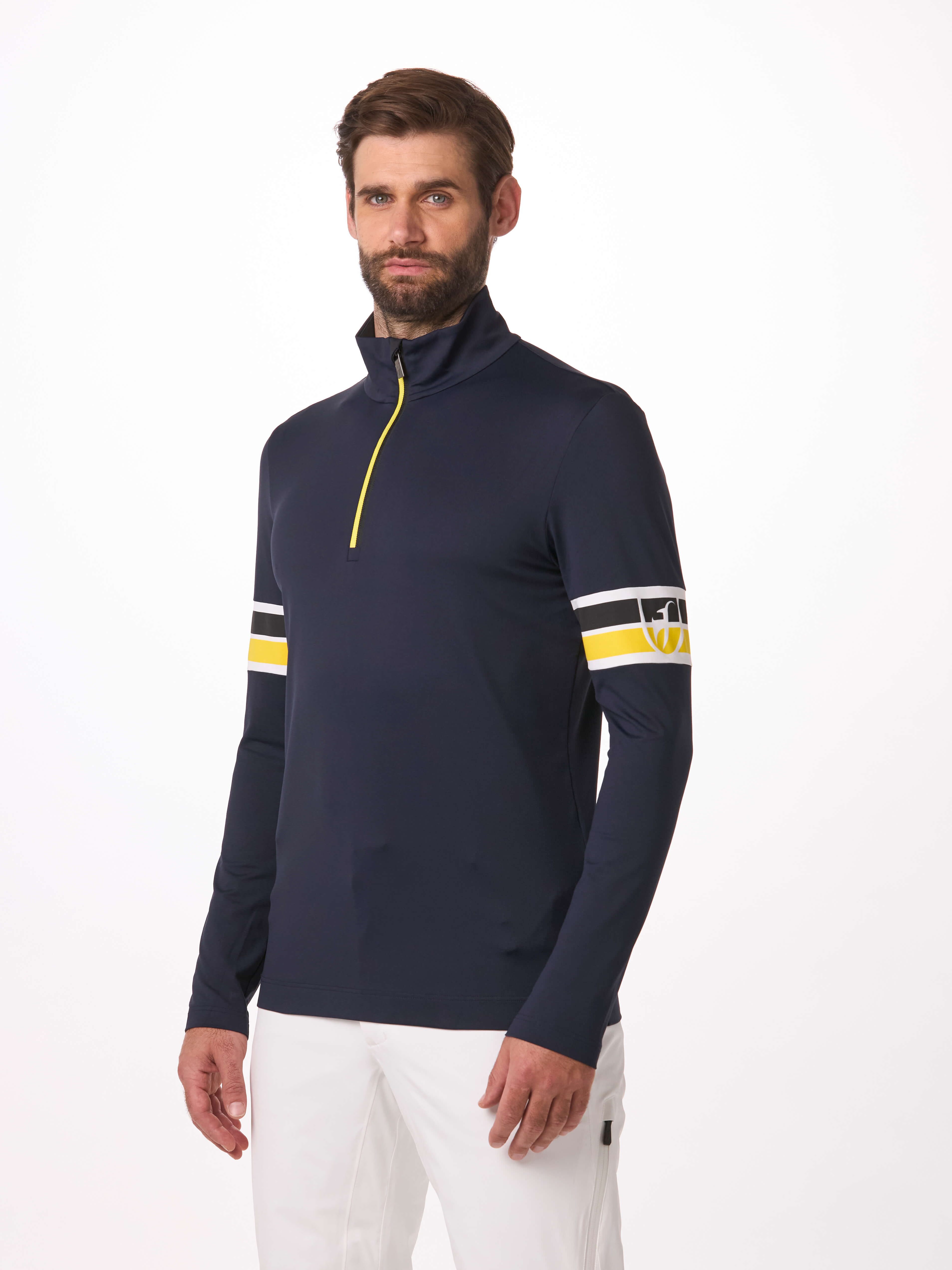 Designed for comfort and performance on the slopes, the MATEO men’s first layer is made from a lightweight, breathable, and quick-drying functional jersey from France. Signature accent stripes add to the sporty look, which is completed by the YKK® zipper.
