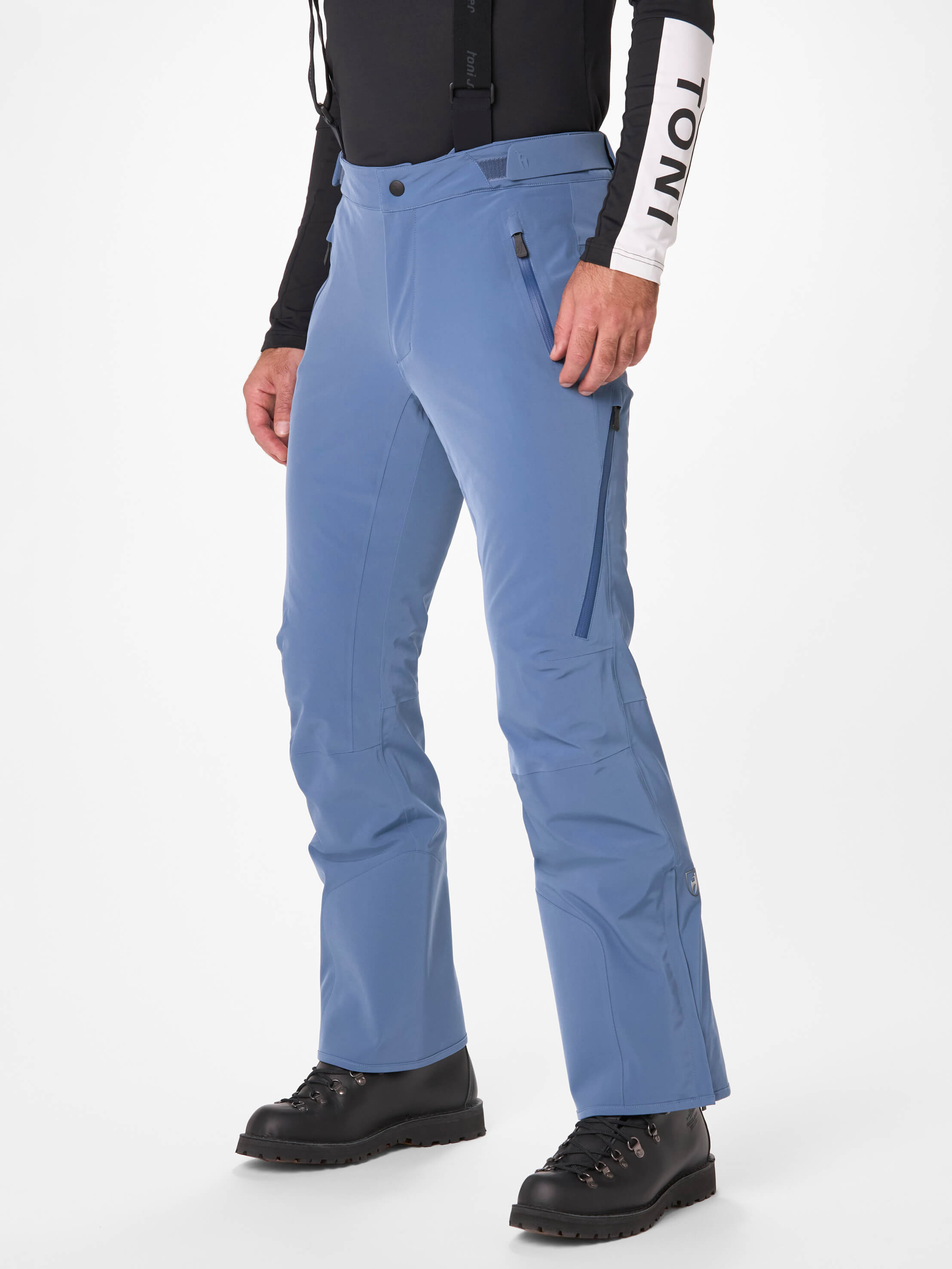 The NICKY men’s ski pants, made from Japanese Premium 4-way Stretch, prove to be extremely reliable both on the slopes and in off-piste terrain. They offer a perfect fit with maximum freedom of movement and high protection against cold, wind, and moisture. For optimal body climate, the pants feature ventilation zippers on the outer legs as well as easy entry zippers, making it easier to put on with ski boots. The TRA-IN sliding button ensures a secure waistband closure. The Toni Sailer ski pants also come with suspenders from the collection.