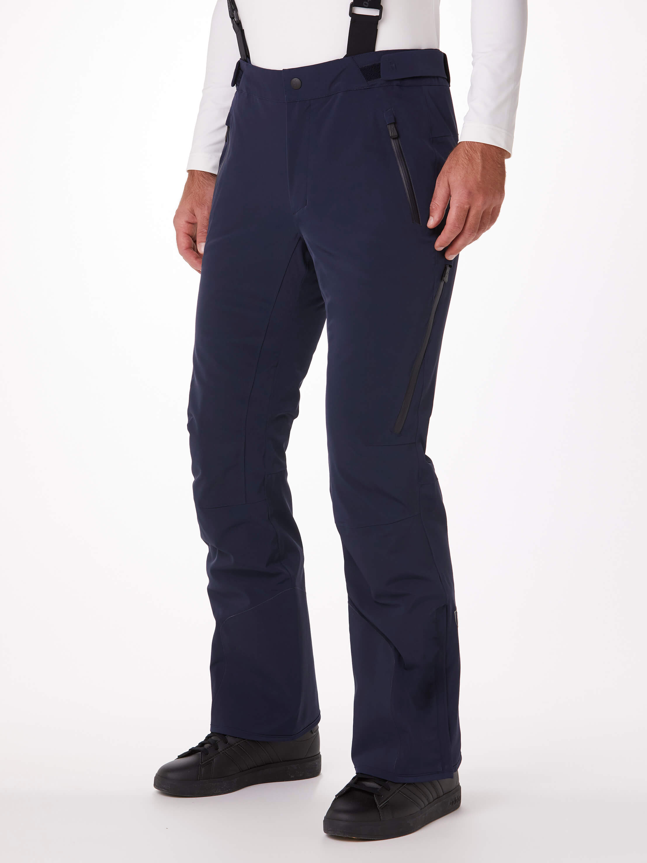 The NICKY men’s ski pants, made from Japanese Premium 4-way Stretch, prove to be extremely reliable both on the slopes and in off-piste terrain. The pants offer a perfect fit with maximum freedom of movement and high protection against cold, wind, and moisture, coming with fully taped seams. For optimal body climate, the pants feature ventilation zippers on the outer legs as well as easy entry zippers, making it easier to put on with ski boots. With edge protection in the corresponding ski pants colour. The NICKY ski pants also come with suspenders from the collection.