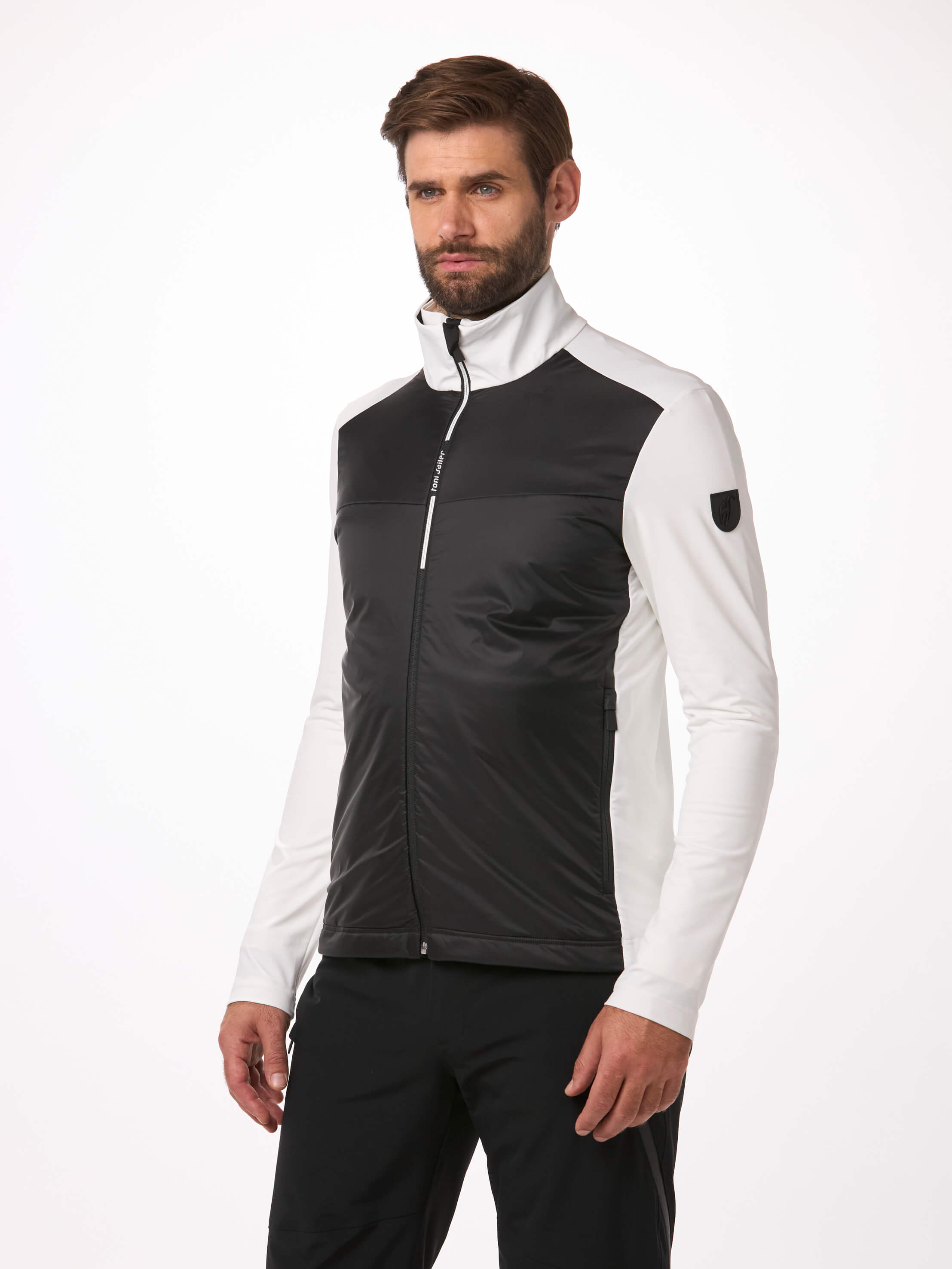 The OTTO men’s mid layer jacket offers an exceptionally soft feel, thanks to the high-quality functional material from Italy. The fabric is highly elastic, breathable and quick-drying. For colder days on the slopes, greens and in the city, PrimaLoft® isolation will keep you warm.