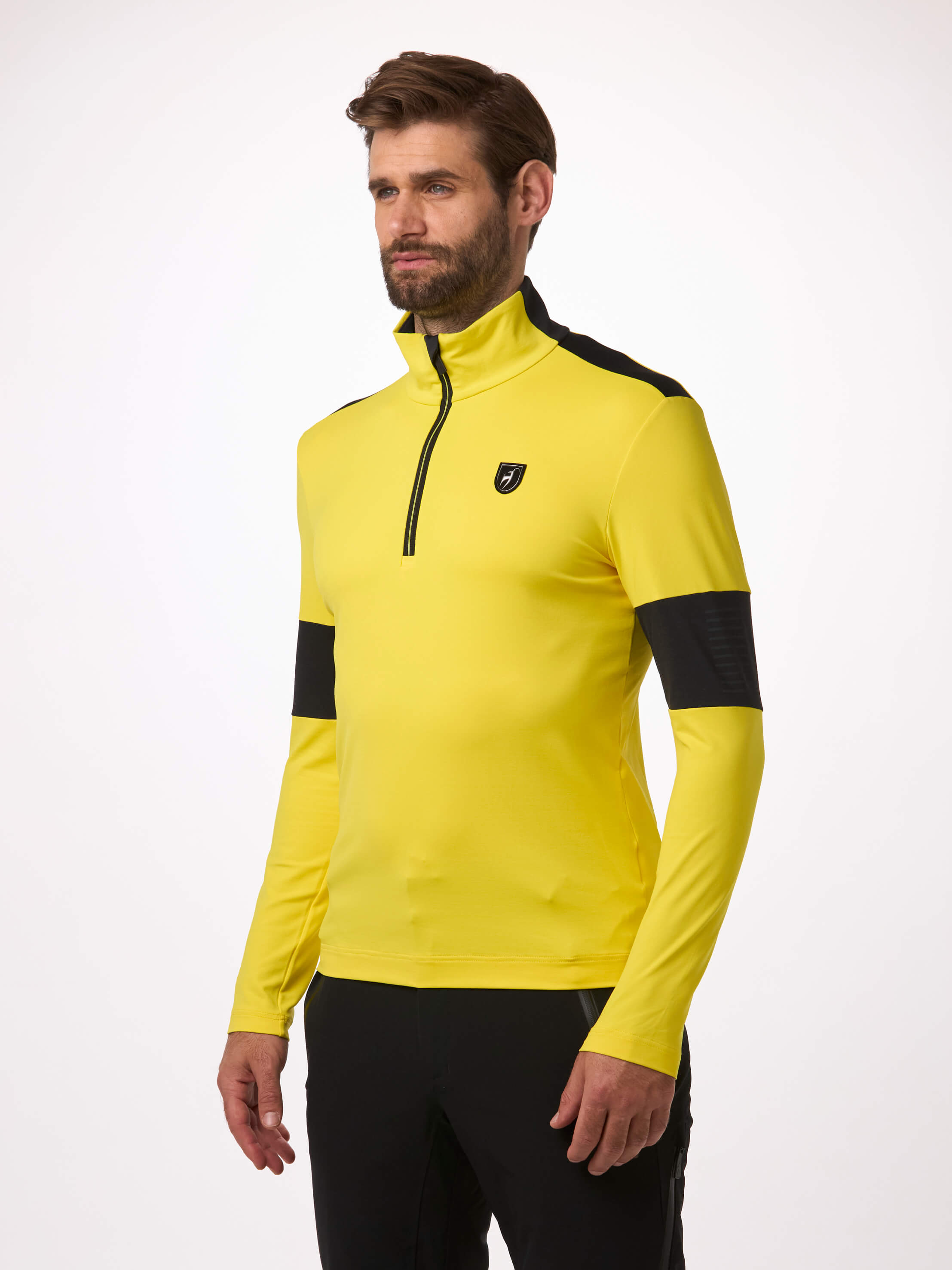 The VICTOR men’s first layer ensures high comfort due to its material properties. The functional jersey, made in France, is light, breathable, quick-drying, and offers high freedom of movement. Colour-contrasted inserts, and a two-tone YKK® zipper give this Toni Sailer base layer a sporty racing look that pairs perfectly with our jacket range.