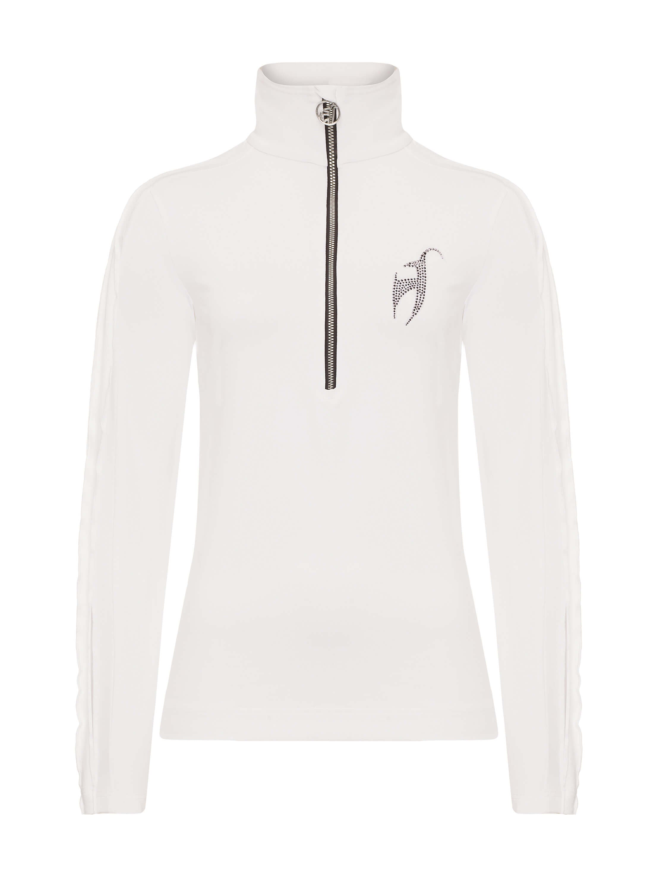 Swarovski® crystals make you shine bright! The VRENI SPECIAL with specially worked ruffles on the sleeves. Our first layer fabric provides warmth, coziness and 100% freedom of movement. Glamorous look on the slopes and chalets.