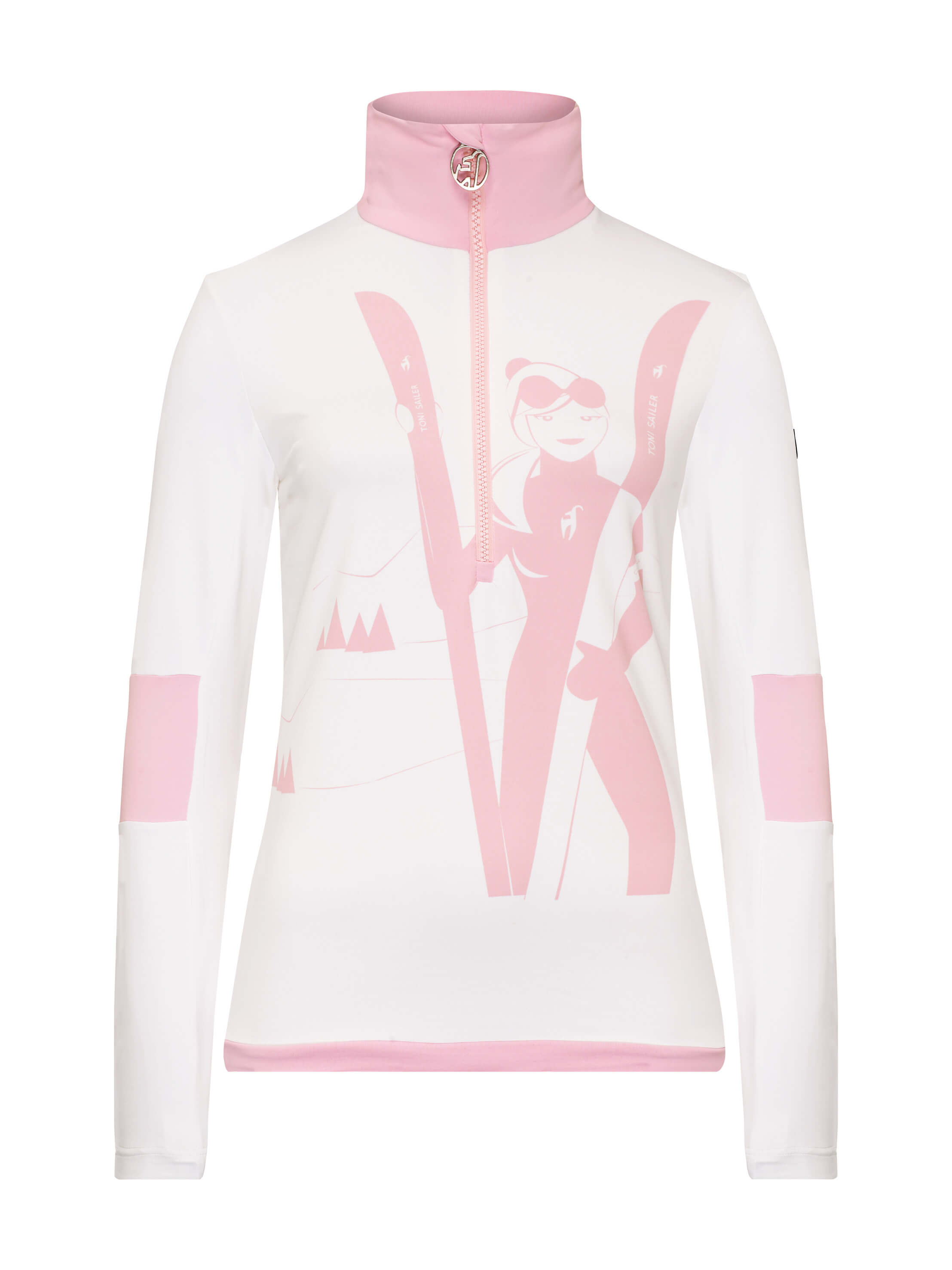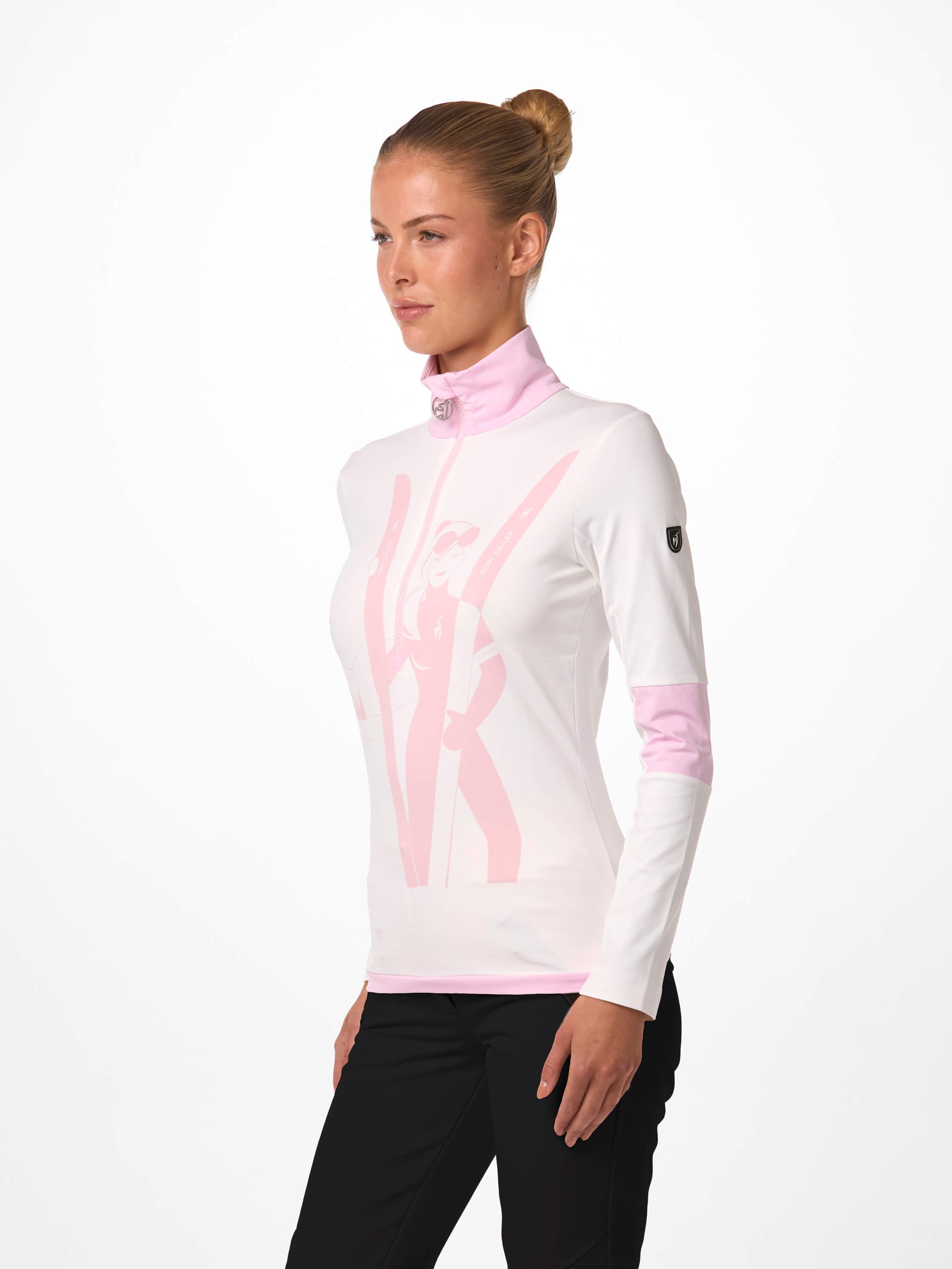The sporty design of the women's First Layer YUMI, inspired by our iconic ALPES print, perfectly complements our all-over jackets and trousers. Developed exclusively by the Toni Sailer design team, YUMI is not only visually appealing but also functional: easy to care for, quick-drying and ideal for active days.