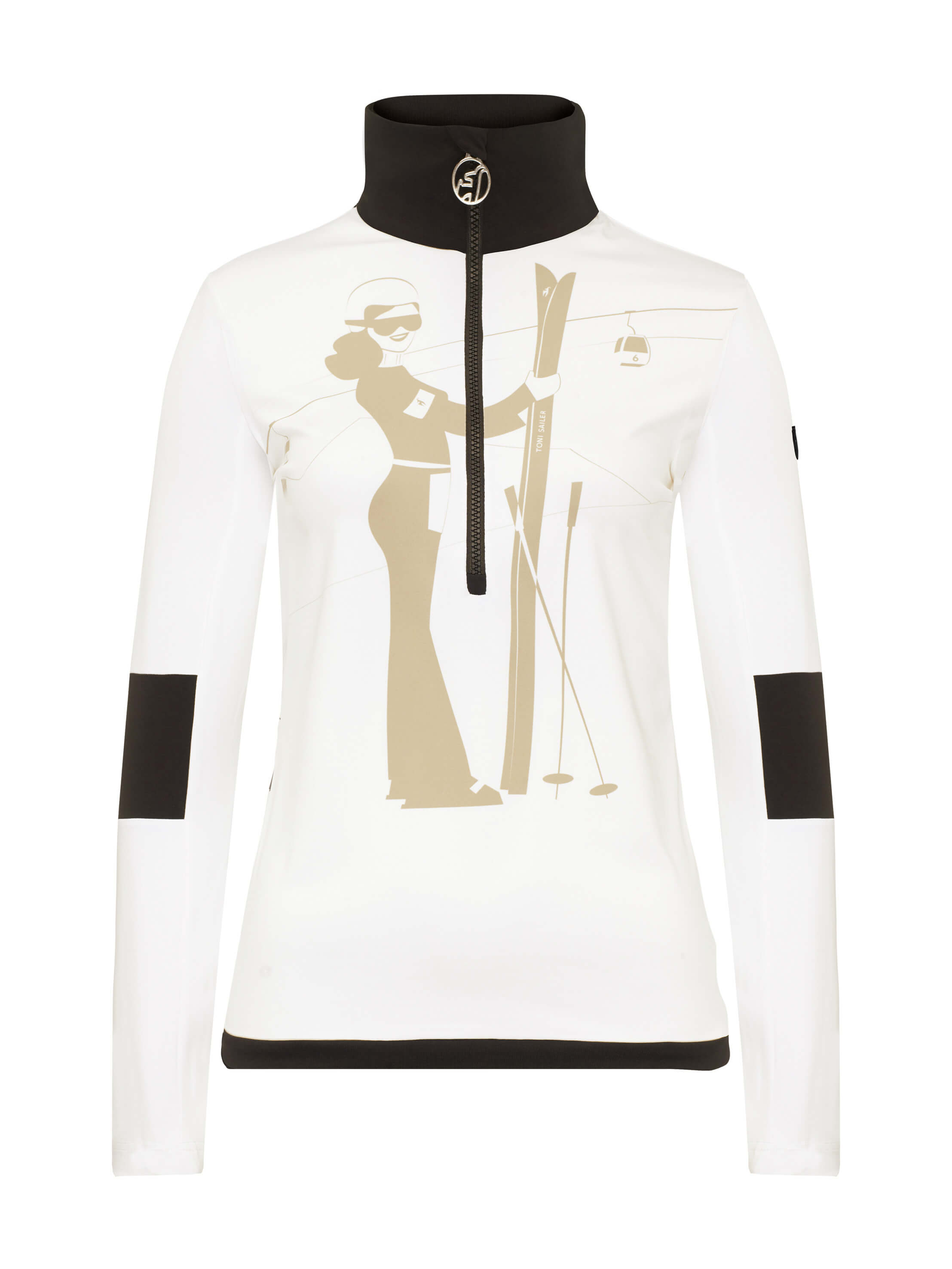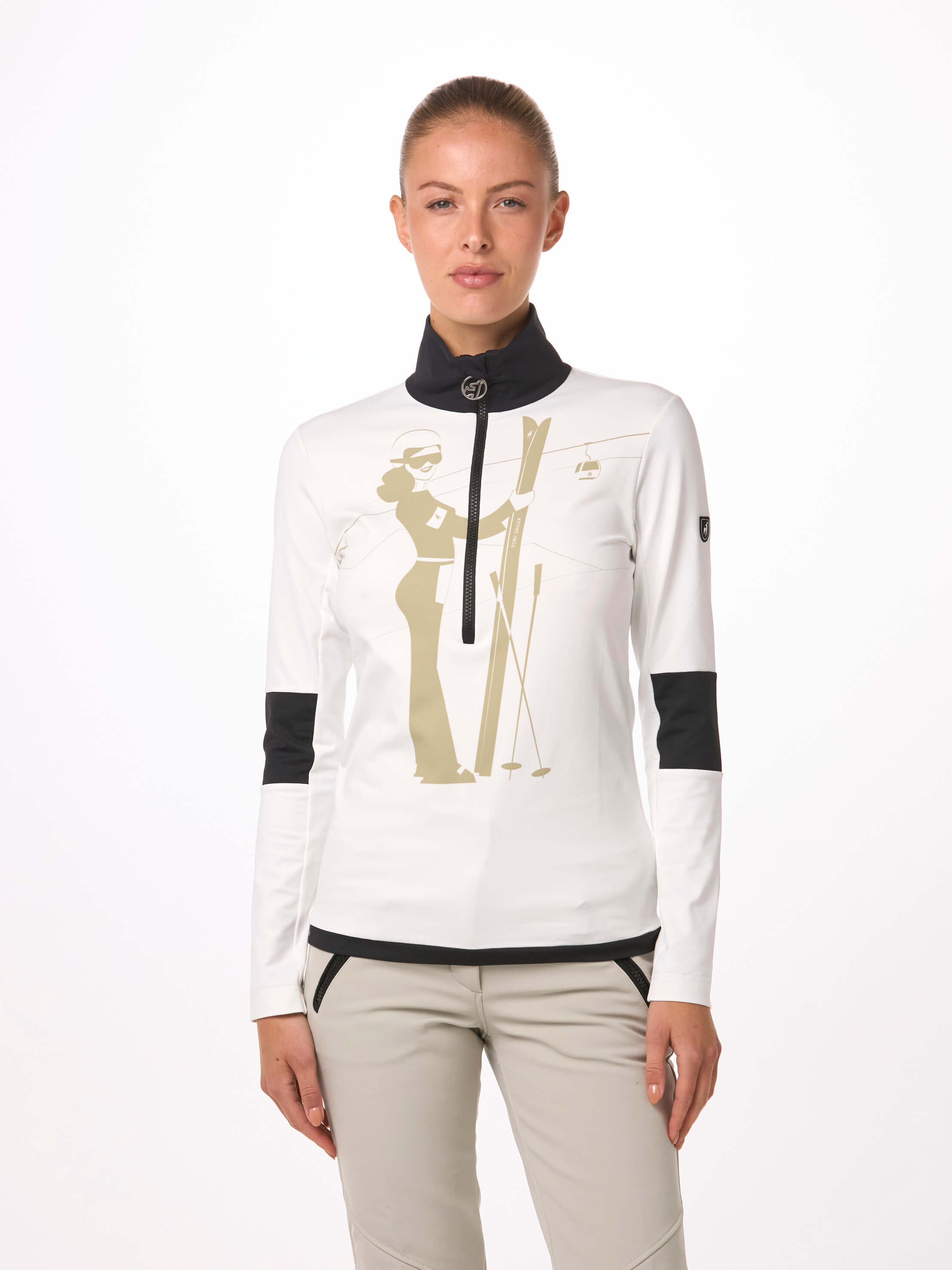 The sporty design of the women's First Layer YUMI, inspired by our iconic ALPES print, perfectly complements our all-over jackets and trousers. Developed exclusively by the Toni Sailer design team, YUMI is not only visually appealing but also functional: easy to care for, quick-drying and ideal for active days.